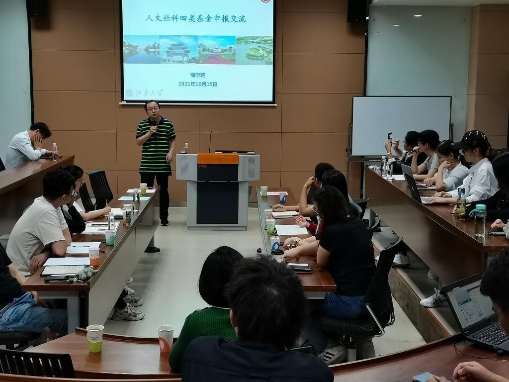 近五年国家社科基金项目、国社科后期资助项目、教育部人文社科项目申报及立项情况;从整体立项、类别、学科、立项高频词等方面详细分析了2021年度三类项目的申报与立项情况,并希望学院对2022年度项目申报早谋划、早布局,详细摸排各级项目申报人员,争取下年度获得更好成绩。