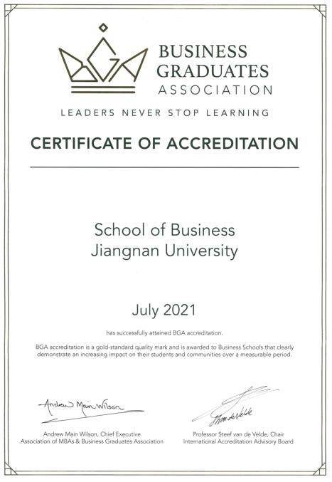 顺利通过BGA(金牌)国际认证。这是继2018年江南大学MBA项目首次通过认证后再次通过国际认证。