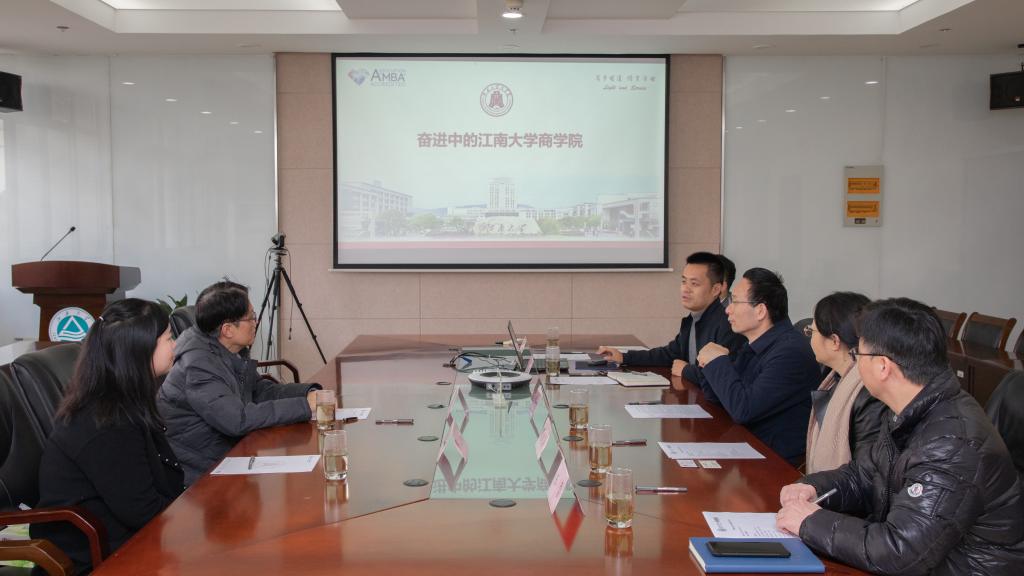在6日上午的AACSB认证进展工作会议上,李天行教授与江南大学党委常委、副校长堵国成、港澳台办公室副主任蔡建英、西港娱乐