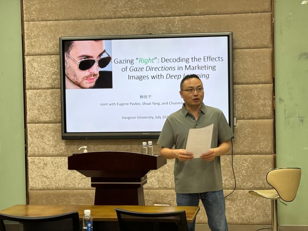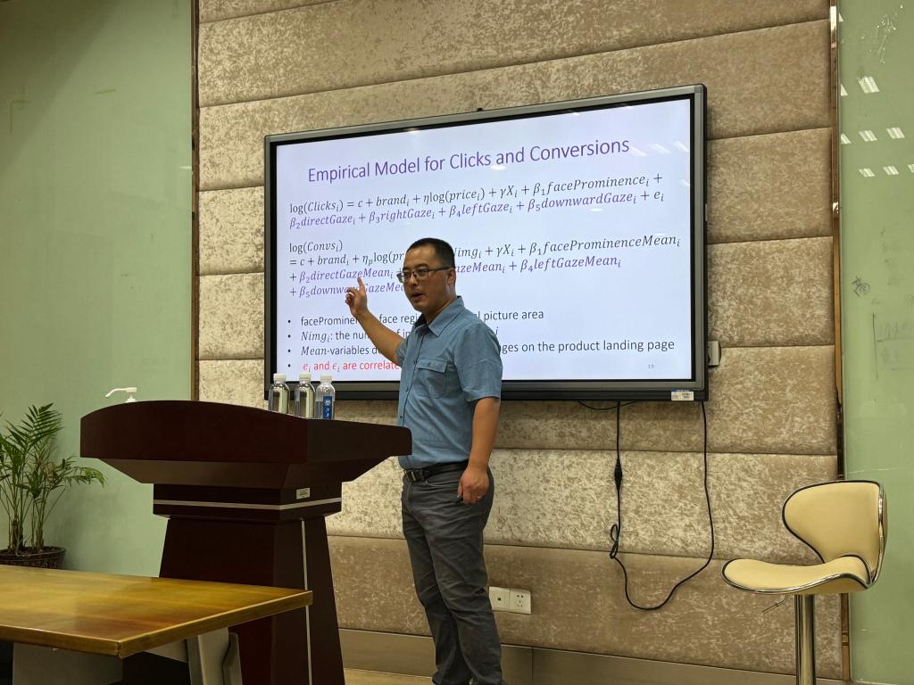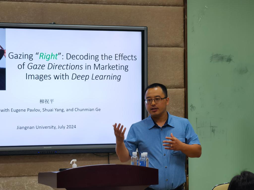 助理教授柳祝平老师,带来了题为“Gazing ‘Right’: Decoding the Effects of Gaze Directions in Marketing Images with Deep Learning”的学术报告。张建强教授主持了本期工作坊,西港娱乐