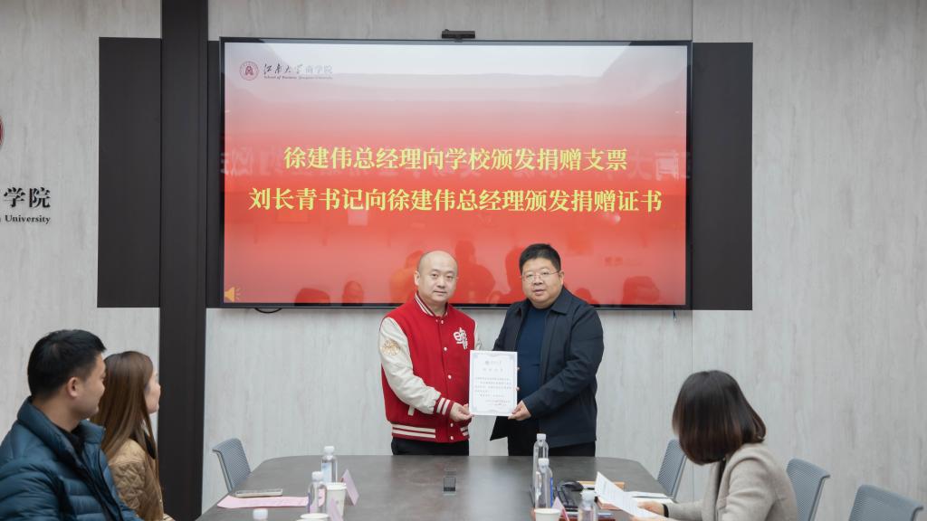 为培育并奖励优秀学子和优秀集体,资助经济困难学生,无锡思锐教育培训中心向江南大学捐赠50万元设立“思锐奖助学金”。签约仪式上,徐建伟与任增亮签署捐赠协议,刘长青代表学院接受捐赠支票并颁发捐赠证书。