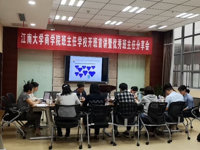 举行班主任学校开班仪式暨首次圆桌讨论会,院党委副书记兼副院长徐静,我校2019-2020学年优秀班主任代表于雪莲和戴越,无锡市精神卫生中心心理科副主任医师陈月江以及班主任、辅导员参加活动,活动由辅导员王璁主持。