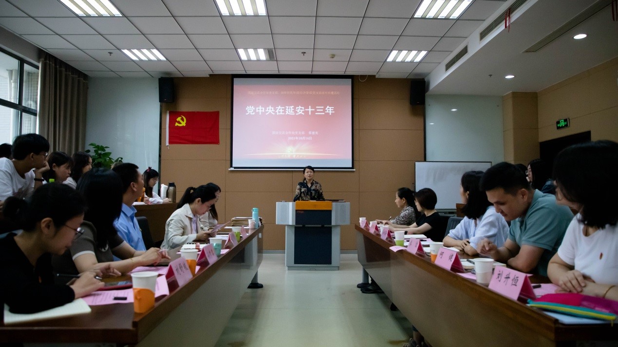 随后,蔡建英以“党中央在延安十三年”为主题就延安精神进行支部书记专题党课,党课从党中央在延安13年的光辉历程、辉煌功绩及基本经验三个部分展开,阐述了我党在延安的历史活动和重大意义。全体党员通过深入浅出的演讲了解了延安精神的灵魂、精髓、核心和突出特征,在场的党员对延安精神进行了热烈的讨论。徐静强调了延安精神是9月29日第一批纳入中国共产党人精神谱系的伟大精神。勉励同志们进一步理解党课所体现的延安精神的来源、内涵及启示。在讨论中,秦洁作为教师党员代表结合部门实践工作对党史学习教育做出了深刻的感悟。她讲到,着眼历史,也立足现在和未来,希望能够将延安精神所体现出的使命感外化为现实工作中的优良品质,为党育人,为国育才。呼吁全体学生党员拓宽国际视野,懂国际规则,积极参与国际竞争,明确个人方向,为中华民族伟大复兴增砖添瓦。西港娱乐