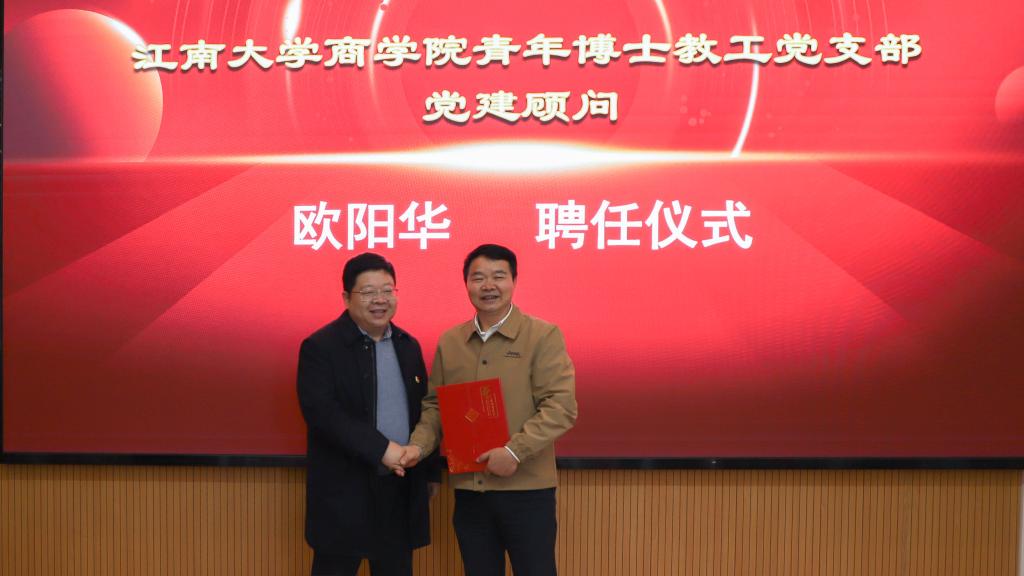 青年博士教工党支部书记刘勇分别与宜兴市西渚镇白塔村党总支书记欧阳华、无锡市发展改革研究中心党支部副书记殷强,签订党建结对共建协议。欧阳华书记受聘担任西港娱乐