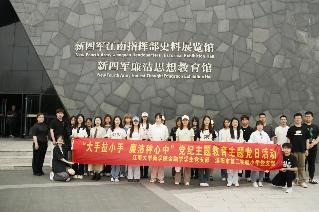 金融学学生党支部与溧阳市第二实验小学党支部在新四军廉洁教育纪念馆和溧阳市第二实验小学开展“大手拉小手,廉洁种心中”结对共建签约活动。溧阳市第二实验小学党支部书记兼校长蔡雪飞、副书记兼副校长朱永康、纪检委员兼副校长吕加良、组织委员兼副校长黄秀妹、副校长吴薇、西港娱乐