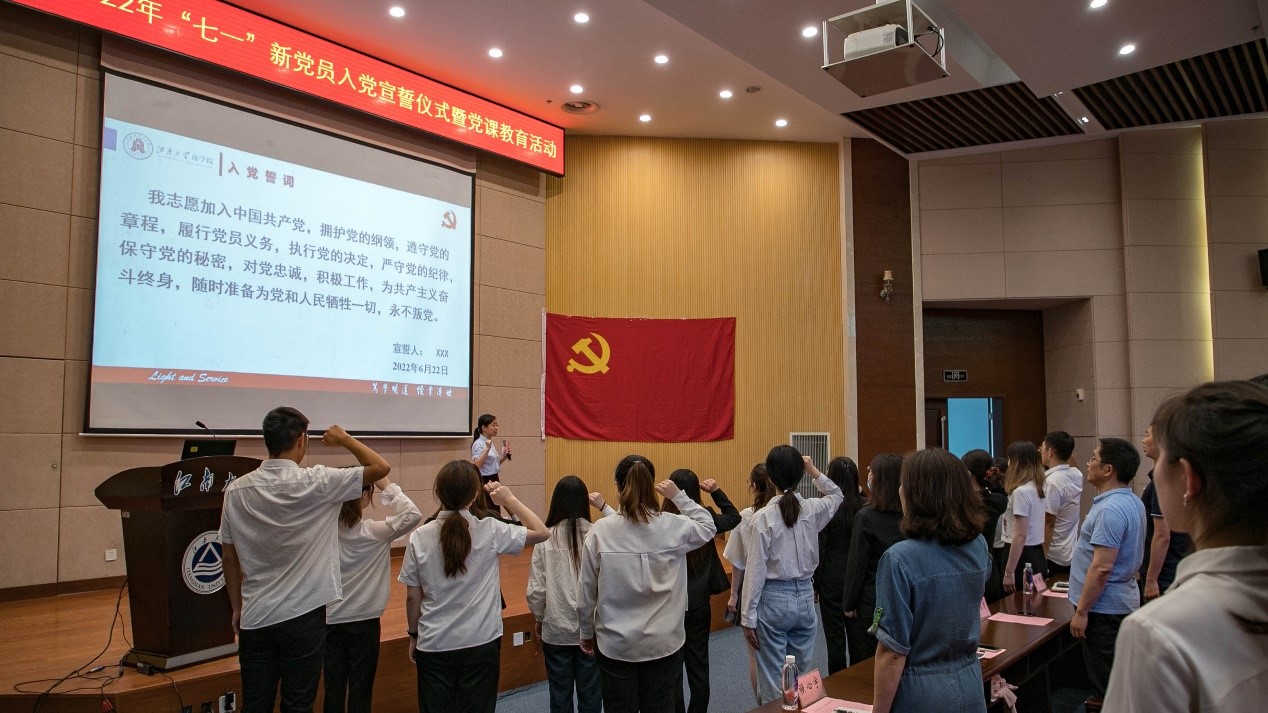 党委十分重视党员的仪式教育与党史学习教育,每年“七一”前夕组织开展新党员入党宣誓仪式与党课教育活动,希望新党员能够牢记入党誓词,不忘初心、牢记使命,学思践悟,知行合一,深刻领会“两个确立”的决定性意义,进一步增强“四个意识”、坚定“四个自信”、做到“两个维护”,时刻用誓言来激励自己,终身牢记自己的誓言,以实际行动践行对党的郑重承诺,以优异业绩迎接党的二十大胜利召开。