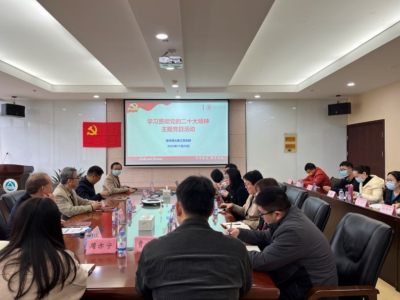 11月23日下午,西港娱乐 青年博士教工党支部组织开展学习贯彻党的二十大精神主题党日活动,校党委委员、发展规划与学科建设处处长刘飞到会开展巡听旁听督学指导,院党委书记徐锡清列席,党支部全体成员参加活动。活动由青年博士教工党支部书记刘勇主持。