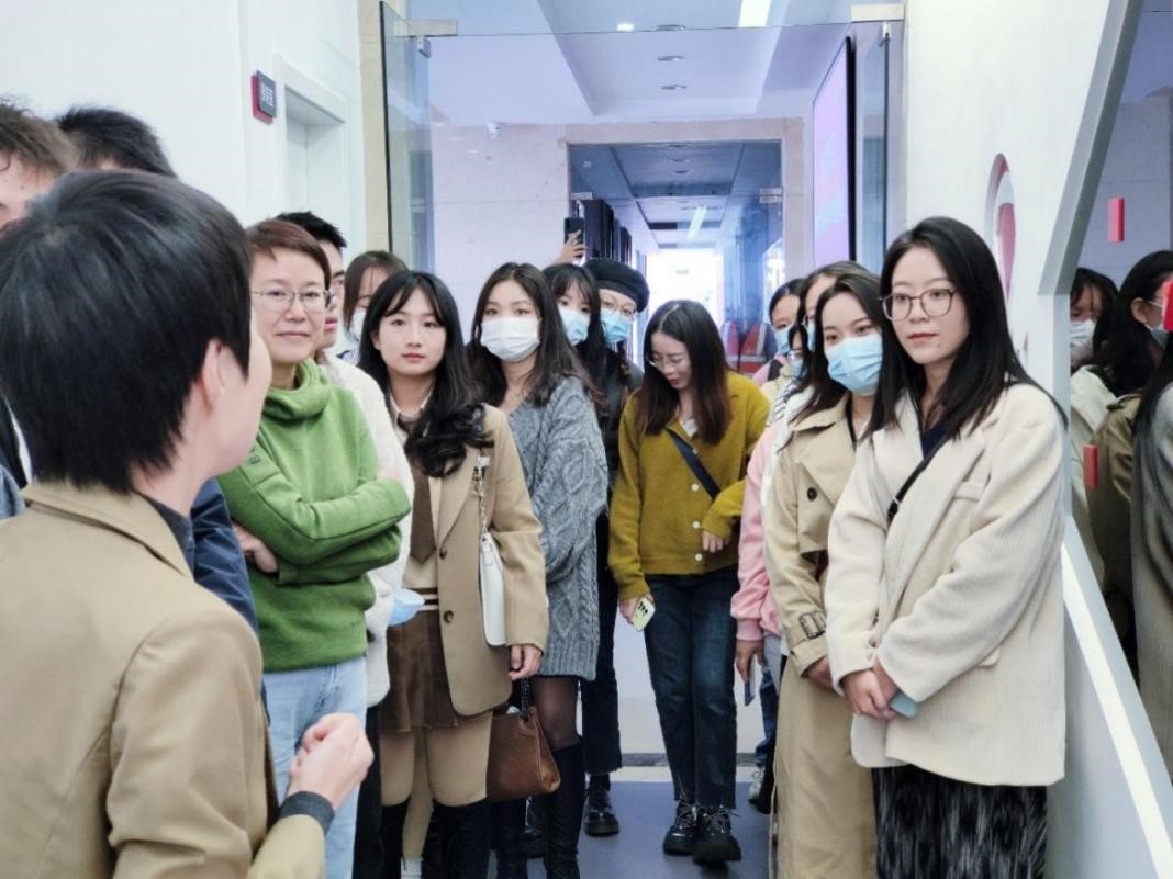 总部培训负责人何心怡带领同学们参观集团总部