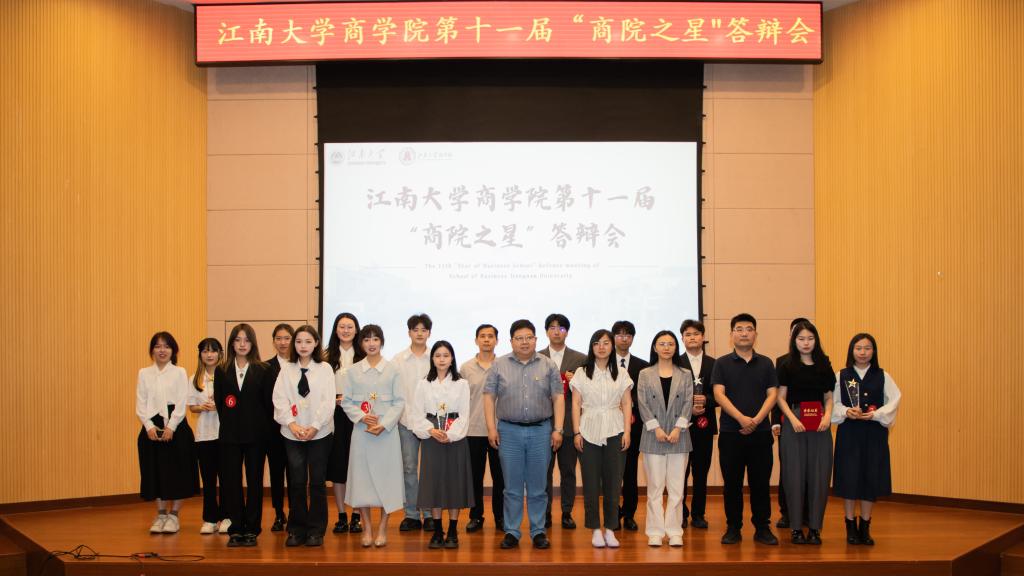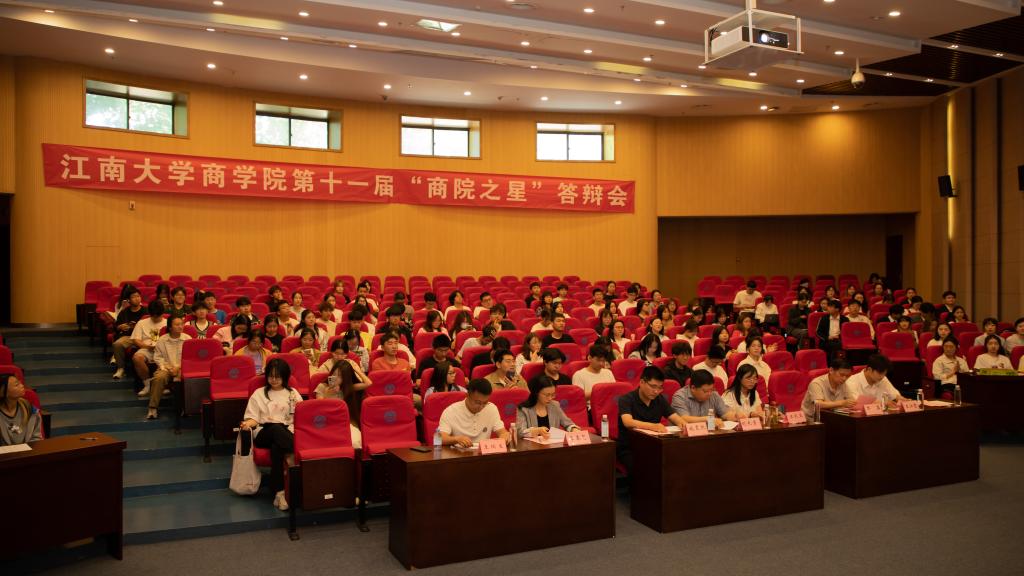 党委书记刘长青,组织系系主任汪长玉,院长助理、国贸系教师施震凯,会计系教师乔磊,管工系教师季春艺,市场营销系教师王江哲,2022级辅导员王瑞生及150余位学生代表出席本次评选活动。自5月初启动2024年“商院之星”评选活动以来,经过个人申请、资格审查、学院初审等环节,16名优秀学子从33名申报者中脱颖而出,进入最终答辩环节。