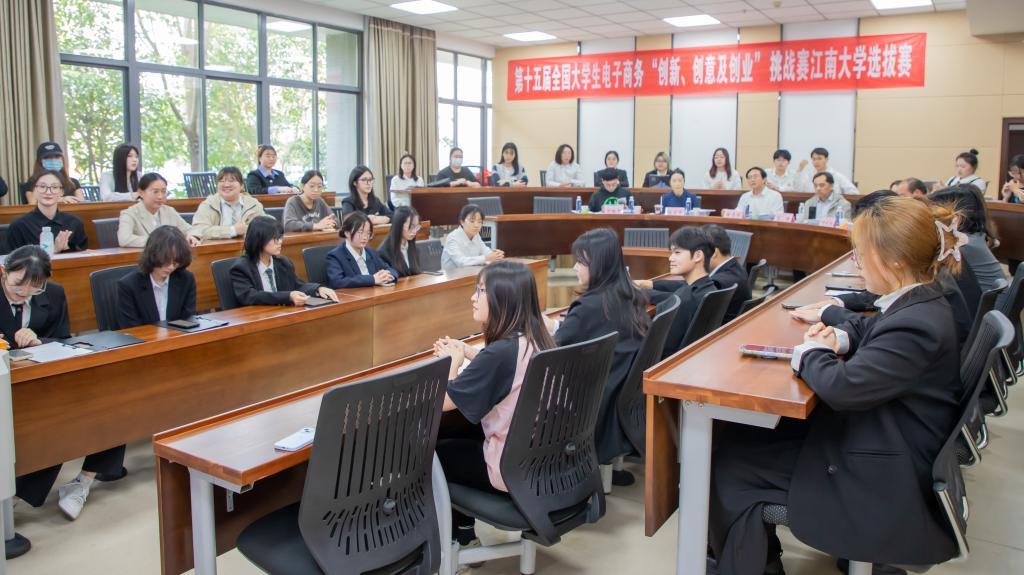 于118会议室,举办第十五届全国大学生电子商务“创新、创意及创业”挑战赛江南大学校级选拔赛。大赛邀请中国国际大学生创新大赛国赛评审专家陈志荣博士,江南大学教务处实践教学中心科长杨宏华,西港娱乐