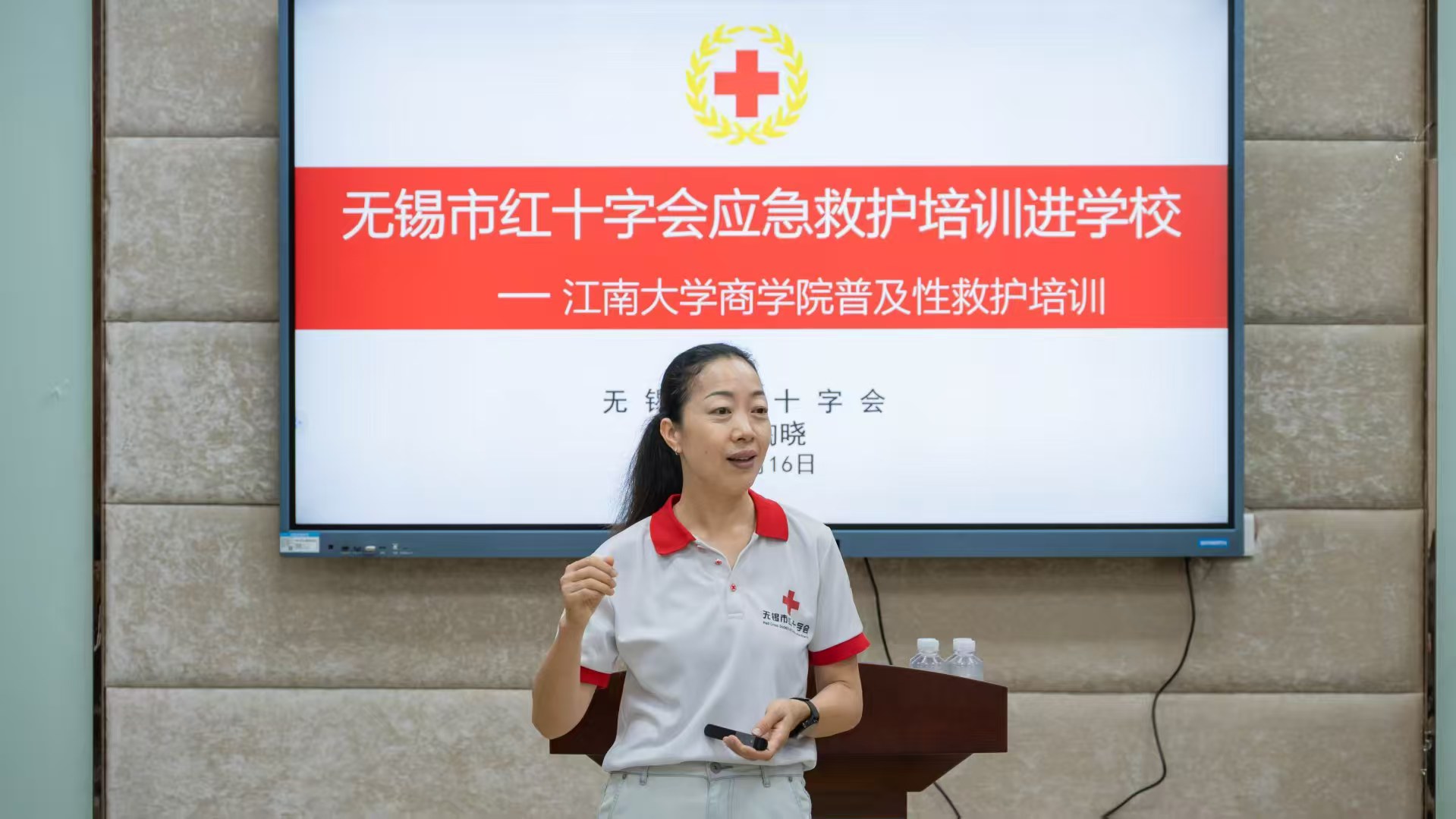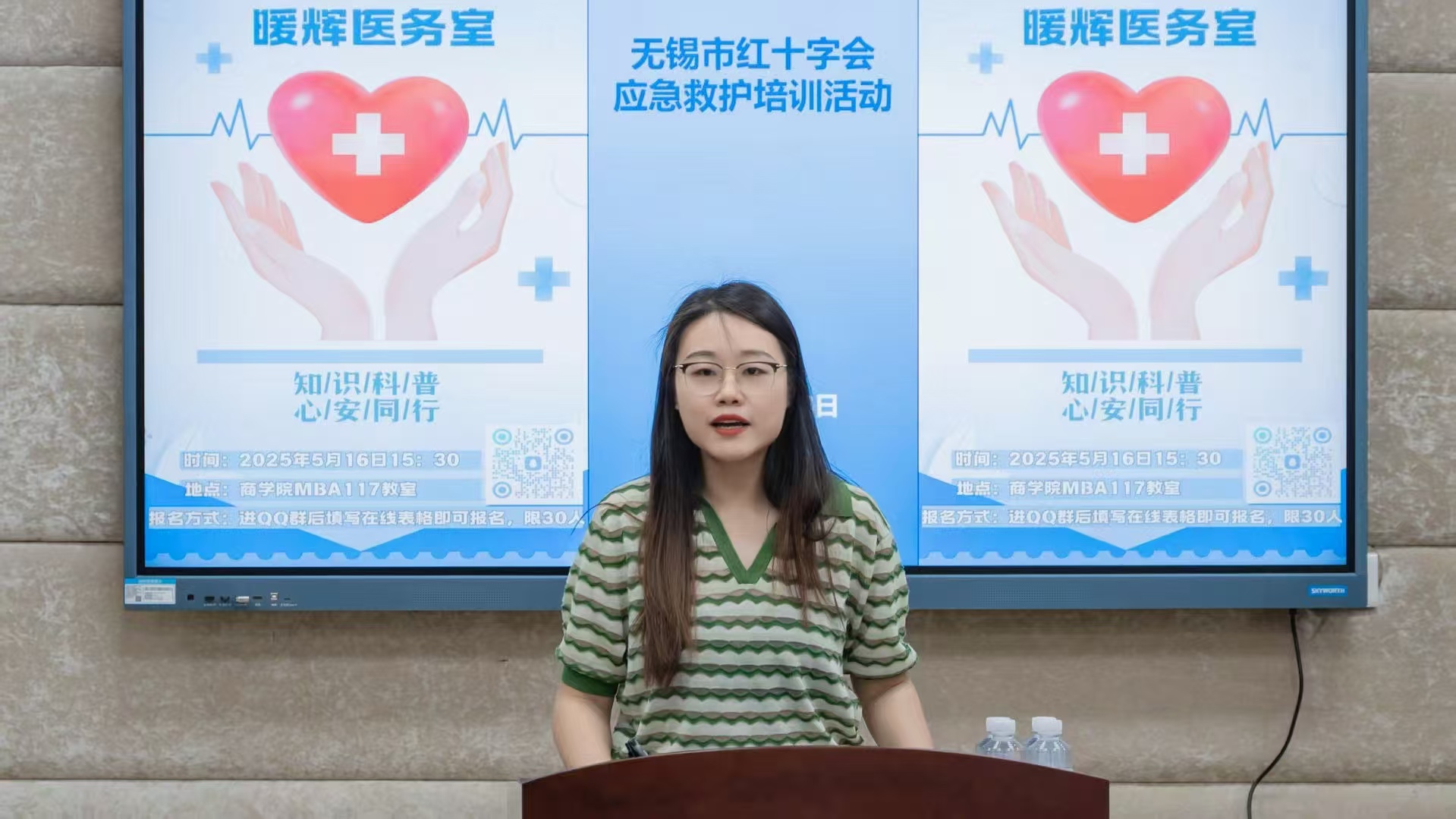 5月16日下午,西港娱乐 联合无锡市红十字会,在学院117教室举办“应急救护培训进校园——暖辉医务室”专题活动。活动邀请无锡市红十字会专业老师陶晓作专题培训,30名西港娱乐 学生参加系统理论教学和实操演练。活动由西港娱乐 心理工作辅导员田雨主持。