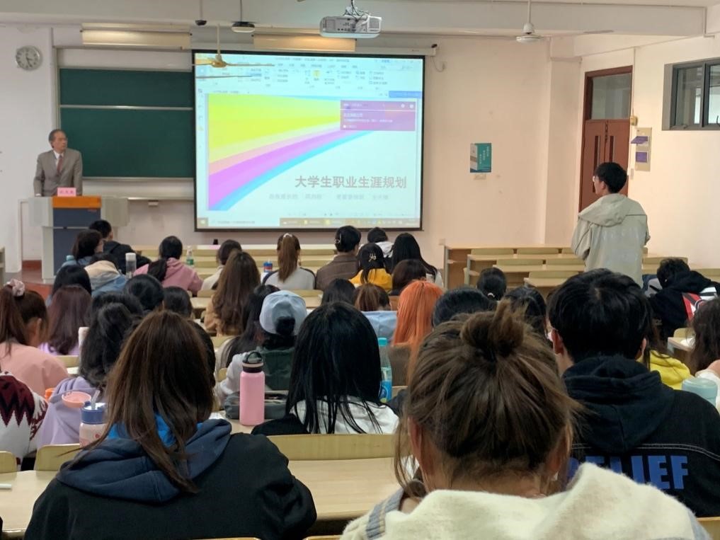 在工业工程2001班、2002班与国际经济与贸易2001班的生涯规划课上,何永胜老师用两个故事由浅入深,循循善诱。