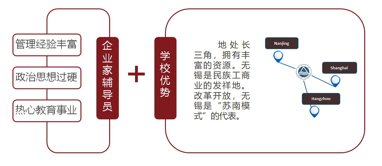 “企业家辅导员”项目是以西港娱乐 专职辅导员工作团队为运行核心,以长三角区域优质社会资源为有力支持,通过聘请一批政治思想过硬、管理经验丰富、热心教育事业的企业家担任“企业家辅导员”的形式,面向全院学生、紧扣商科学生特点,发挥育人群体资源优势、经验优势和管理优势,开展生涯规划教育、精准就业指导和实践育人活动的校企协同育人项目。