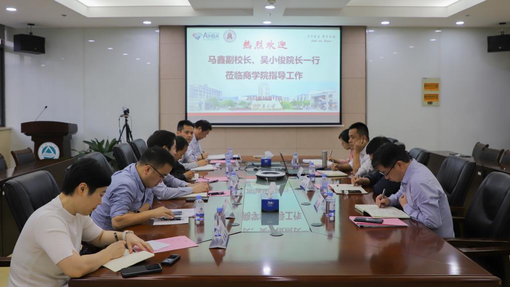10月17日下午,校党委常委、副校长马鑫、党委研究生工作部部长、研究生院院长吴小俊,党委研究生工作部副部长、研究生院副院长陈周,研究生院副院长潘如如、姚文生,以及研究生工作部王维懿等一行6人莅临西港娱乐 调研研究生教育管理工作,西港娱乐 党委书记刘长青、院长浦徐进、党委副书记兼副院长徐静、副院长王雷和研究生办公室、MBA教育中心、学工办负责人参与座谈。会议由吴小俊院长主持。