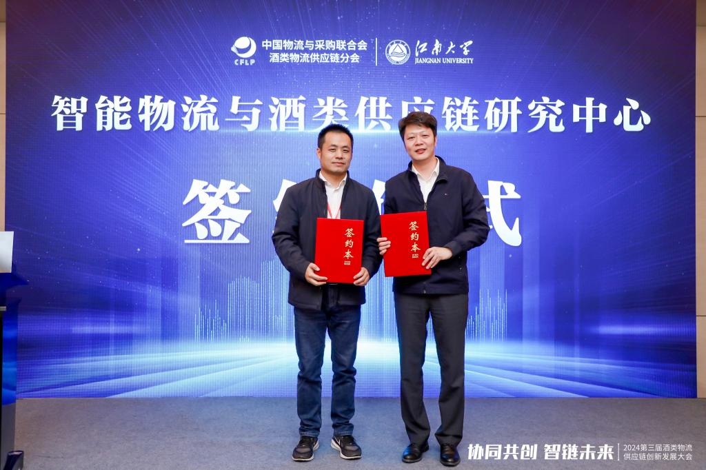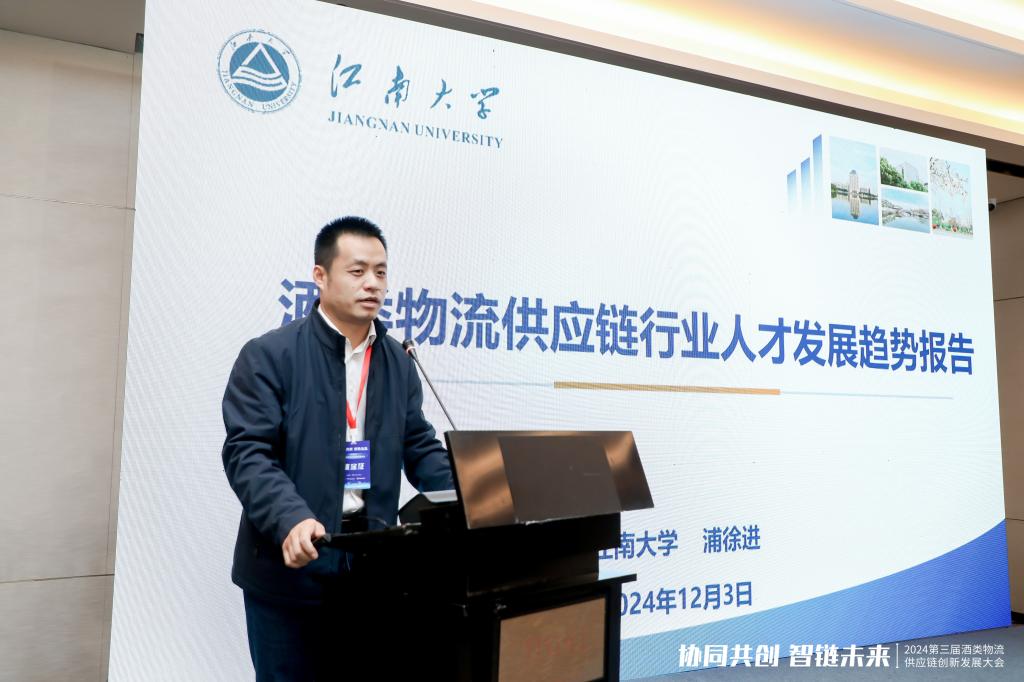 酒类智慧供应链产教融合创新人才论坛上,浦徐进代表江南大学与中国物流与采购联合会酒类物流供应链分会进行“智能物流与酒类供应链研究中心”战略签约,并以《酒类物流供应链行业人才发展趋势报告》为题作报告。