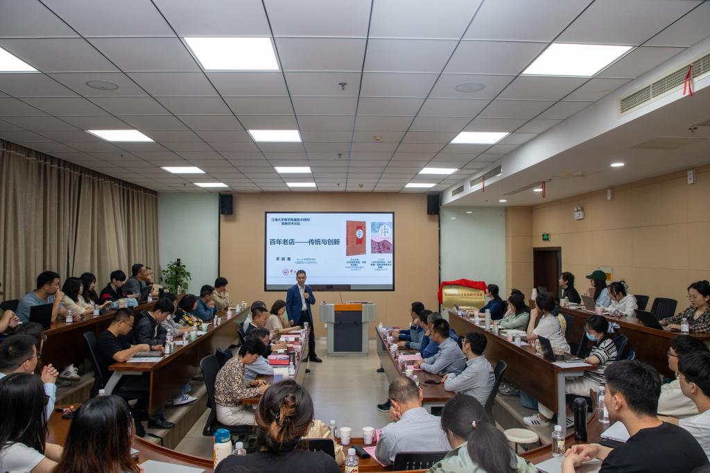 116东方厅举办。讲坛邀请国家重大人才工程入选者、中山大学李新春教授作题为“百年老店:传统与创新”的学术报告。无锡市工商联党组成员、副主席刘启雄,无锡市工商联调研处处长刘小兵,孙冶方经济科学研究院特邀研究员张鸣年,建行无锡分行普惠金融事业部和乡村振兴金融部总经理顾月红,无锡洛克精酿文化有限公司总经理缪明,无锡市慧臣企业咨询管理有限公司合伙人卞锡飞,明德资本合伙人常堂钊,江南大学党委常委、统战部部长朱飞,西港娱乐