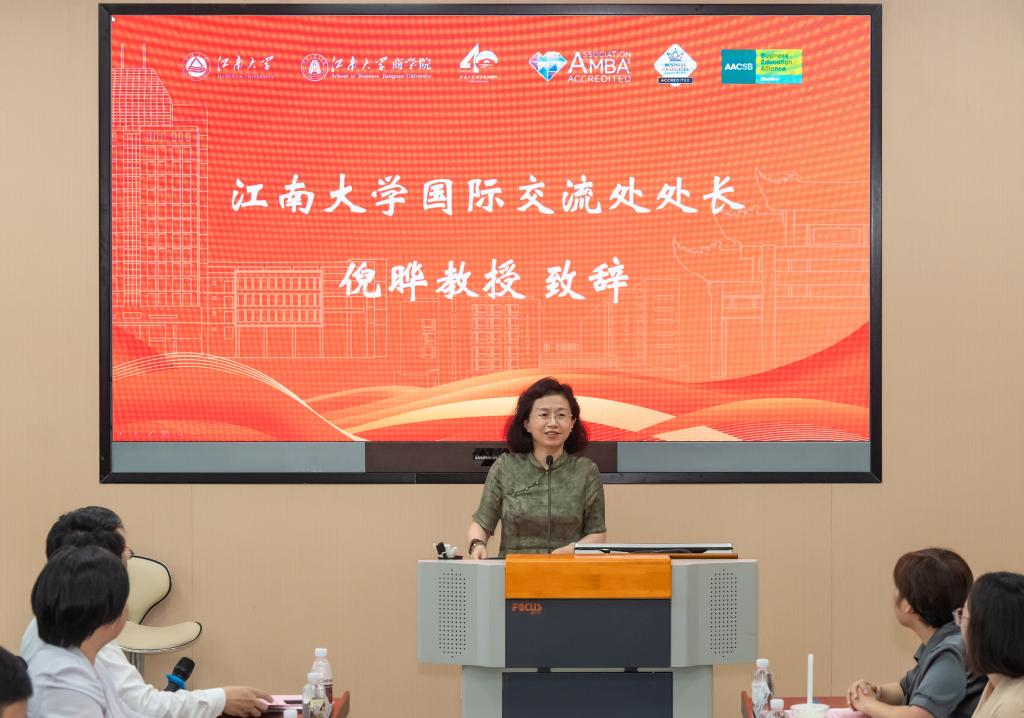 倪晔在致辞中简要回顾了江南大学丝路项目的建设情况,表示江南大学秉承“推进‘一带一路’,深化产教融合”的教育理念,立足“一带一路”沿线国家地区的发展与创新实践,服务沿线国家中国企业及东道国企业,培养具有全球视野、中国经验、创新精神和创业能力的高素质工商管理人才。她表示,希望主题论坛的举办及实习基地的签约,能促进江南大学国际教育的教育链、人才链与产业链、创新链深度融合,为高校与企业、政府与协会构建了一个多维度、立体化的交流与合作生态。