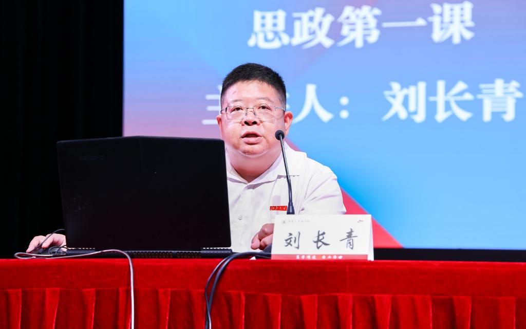 刘长青以《数智时代商科人才培养的“变”与“不变”》为主题为2025级新生讲授思政第一课。他从世界百年未有之大变局切入,深入剖析全球格局演变、技术革命浪潮与教育范式转型所带来的多重变革。他指出,面对外部环境不确定性增加,商科青年要坚定正确道路、练就过硬本领,努力实现德智体美劳的全面成长。