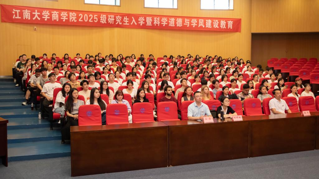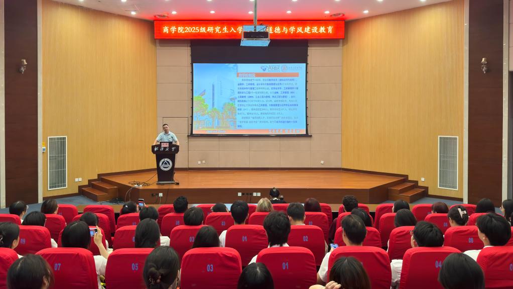 9月7日上午,西港娱乐 在103远东报告厅举行2025级研究生入学暨科学道德与学风建设教育大会。西港娱乐 副院长王雷、MBA/MEM教育中心办公室主任唐杰、留学生负责教师刘舒皎及全体2025级全日制研究生新生参加。会议由研究生新生辅导员孙旭媛主持。