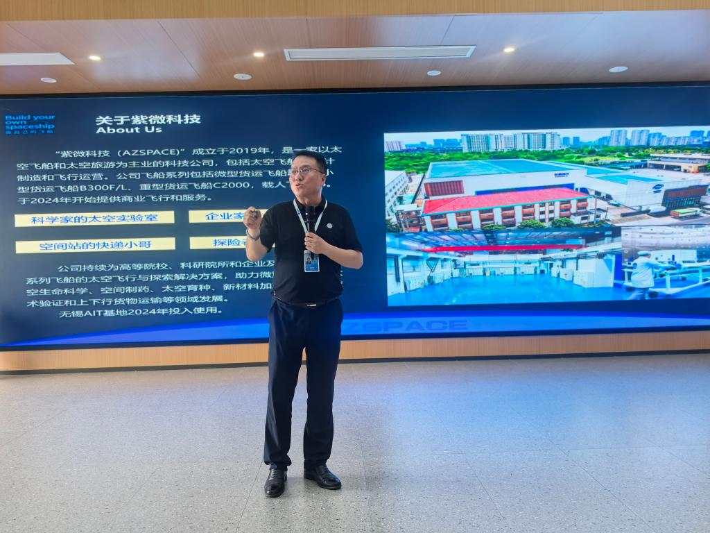 活动伊始,班谦就目前公司西港娱乐、业务版块工作以及未来愿景一一展开介绍。紫微宇通科技有限公司于2019年成立,是中国首家民营太空飞船公司,简称“紫微科技(AZSPACE)”,主要从事太空飞船的设计制造和飞行运行。2023年,公司自主研制的卫星“迪迩一号·梁溪号”在酒泉卫星发射中心成功进入预定轨道。针对紫微科技所涉及的不同种类太空飞船设计制造以及飞行运作,班谦向同学们做出细致讲解,让学生深刻感悟到科技强国的重要意义,并对太空飞船领域有了新的认识与了解。
