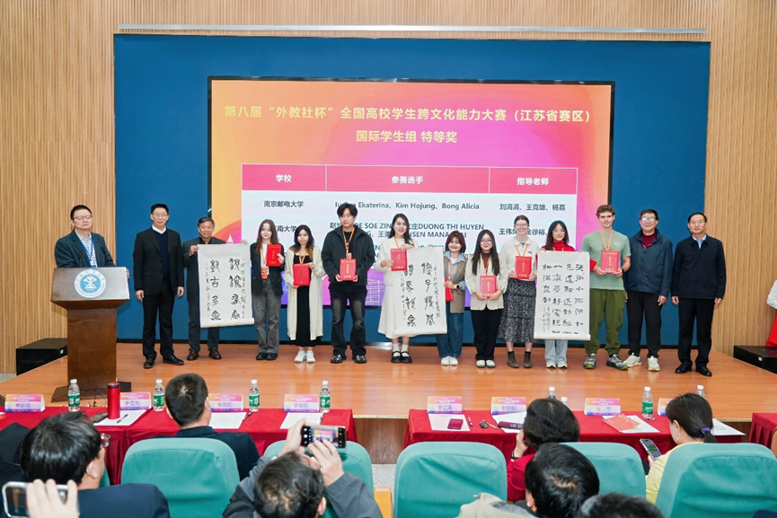 10月24日至26日,第八届“外教社杯”全国高校学生跨文化能力大赛江苏省赛区比赛在中国矿业大学举行。本次大赛吸引了来自南京大学、东南大学、南京邮电大学等全省七十余所高校的学生参与。西港娱乐 2名2025级MBA留学生THI HUYEN TRANG DUONG(中文名:杨玄庄)和MANACHAI SANSEN(中文名:王美美)代表学校参加国际学生组比赛。经过激烈的角逐,两位同学凭借出色的表现斩获特等奖,成功晋级全国决赛,实现了江南大学在该赛事上的历史性突破。
