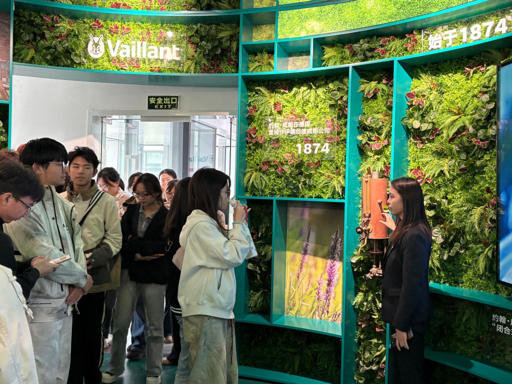 展厅协调员林倩带领同学们参观了威能公司的展厅,深入了解企业的发展历程、核心产品及创新成果。展厅内展示的先进供热系统和节能环保设备让同学们对企业“以科技赋能生活”的理念有了更直观的认识。