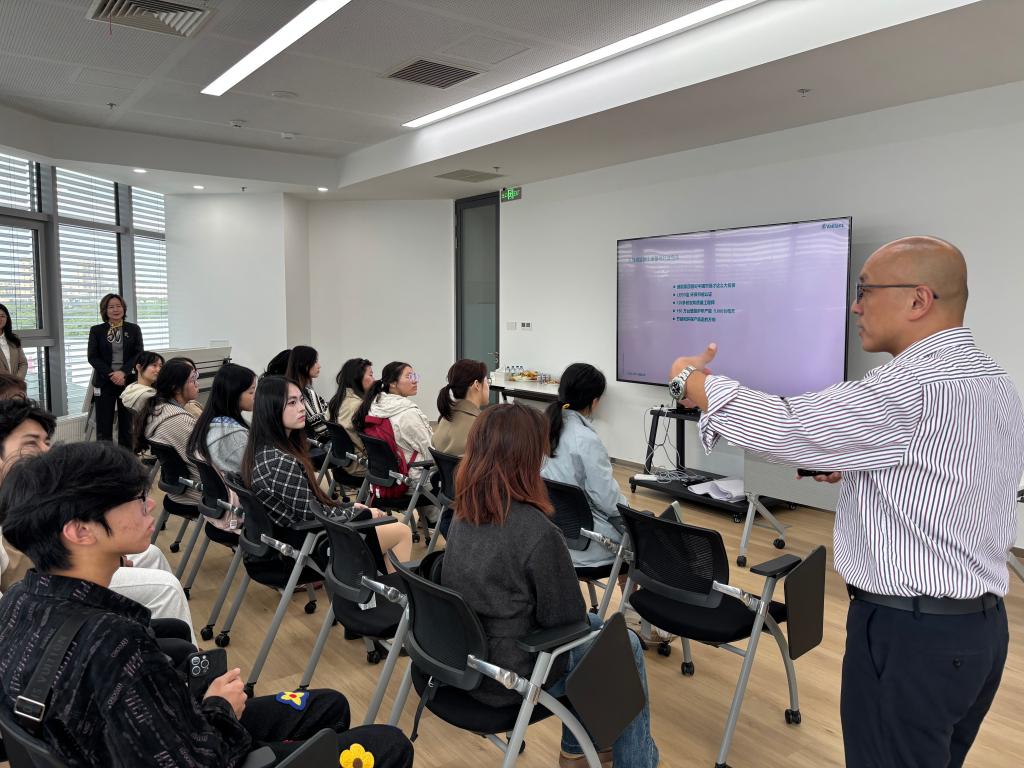 刘云娣与采购总监诸冬淦与同学们热情互动,耐心回答同学们关心的实习选择、职业发展、西港娱乐等各类问题。同学们积极提问,现场气氛热烈。