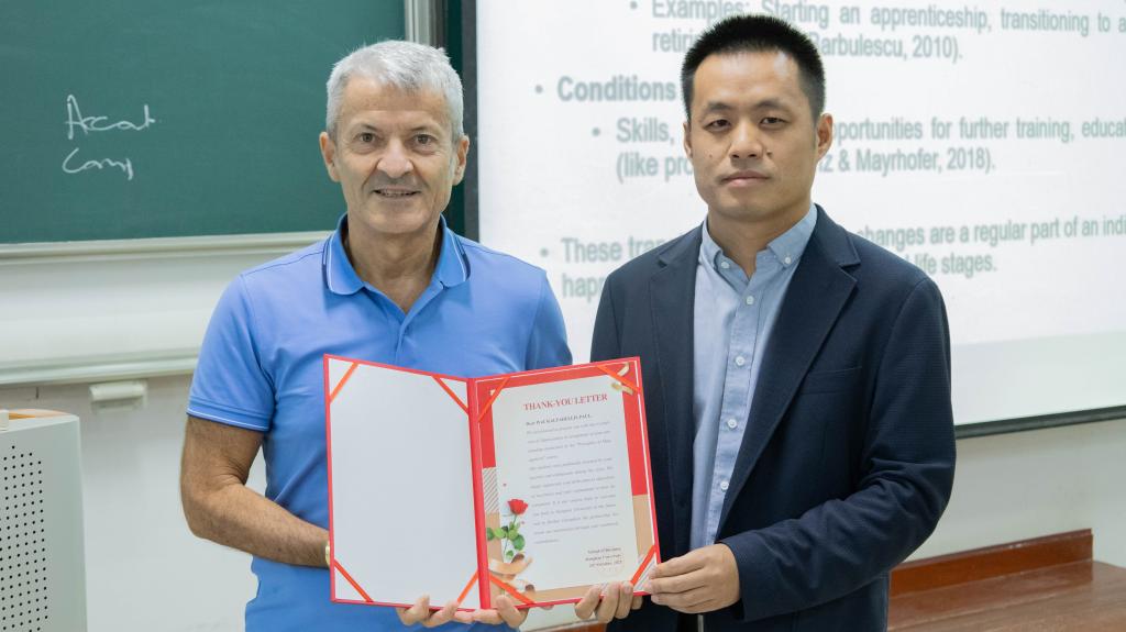 在结课环节中,西港娱乐 院长浦徐进教授为两位外教颁发了感谢信。他表示,非常荣幸邀请到莫纳什大学的优秀教师授课,外教们带来的不仅是前沿知识,更是国际化的教学理念,对拓宽学生的国际视野具有重要意义。Kalfadellis Paul和 Kolar Boris分别结合各自专长,围绕课堂氛围和教学理念分享了授课心得。
