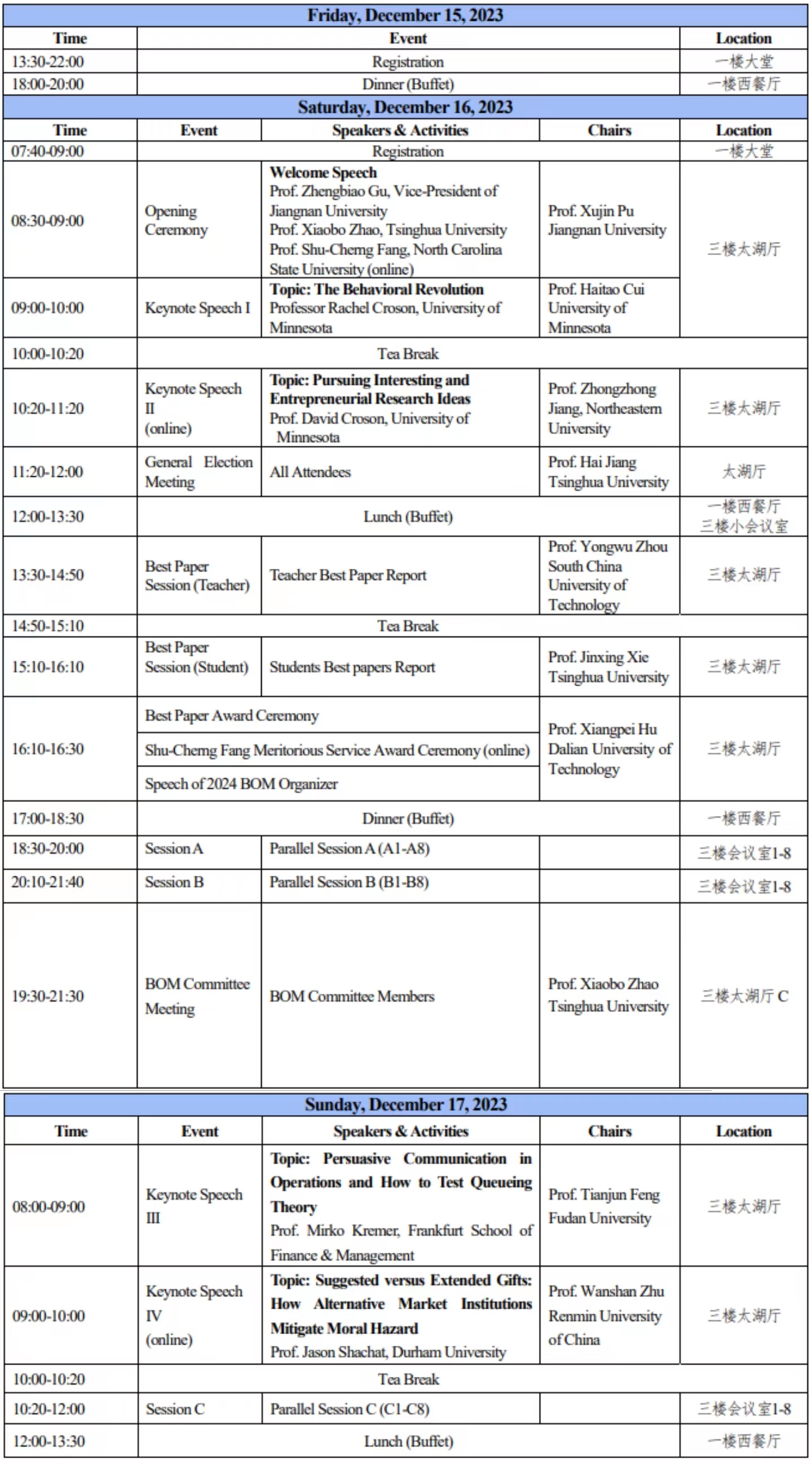 为了进一步促进我国运营管理学者间的学术交流,提升我国行为运筹学与行为运营管理研究和应用水平,2023年第十五届行为运筹学与行为运营管理国际研讨会暨第九次会员代表大会,将于2023年12月15 -17日(周五、周六、周日)在江南大学(无锡希尔顿逸林酒店)举行,大会由中国运筹学会行为运筹与管理分会和西港娱乐