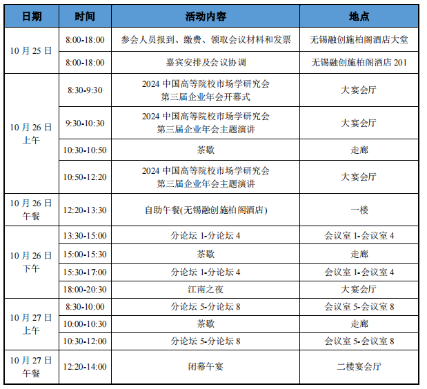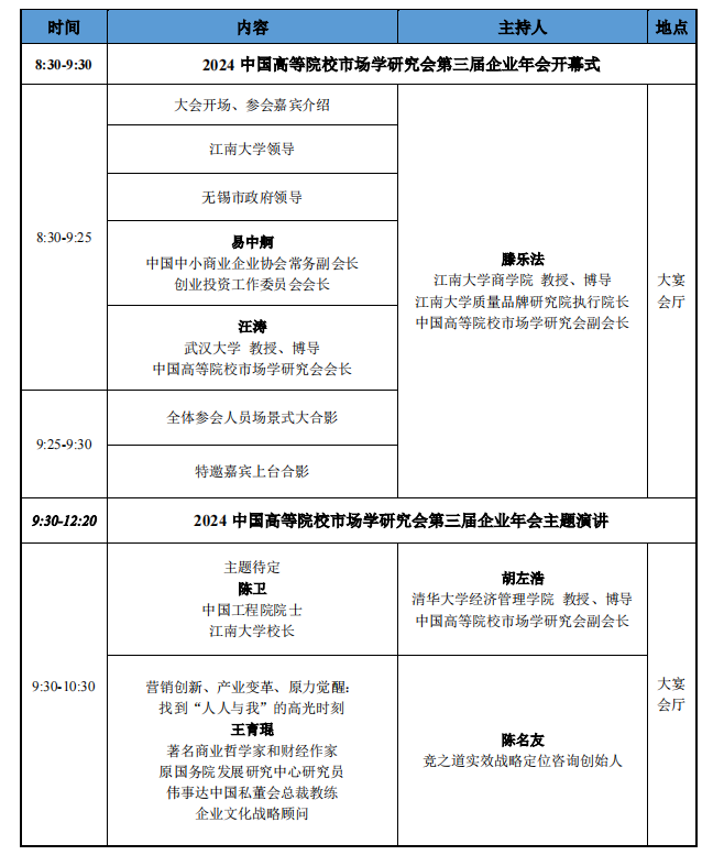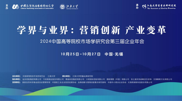 我们诚挚地邀请您参加由中国高等院校市场学研究会 (CMAU) 和江南大学主办、江南大学质量品牌研究院承办的第三届企业年会。本届企业年会将于 2024 年 10 月 25-27 日在享有“中国民族工商业发祥地”美誉的无锡召开。中国高等院校市场学研究会是国家一级学会,是主要由全国各高等院校从事市场营销学教学和研究的专家学者组成的非营利性学术团体。由中国高等院校市场学研究会主办的企业年会是学术界与企业界重要的交流平台,被誉为“中国营销界的产学顶级峰会”。