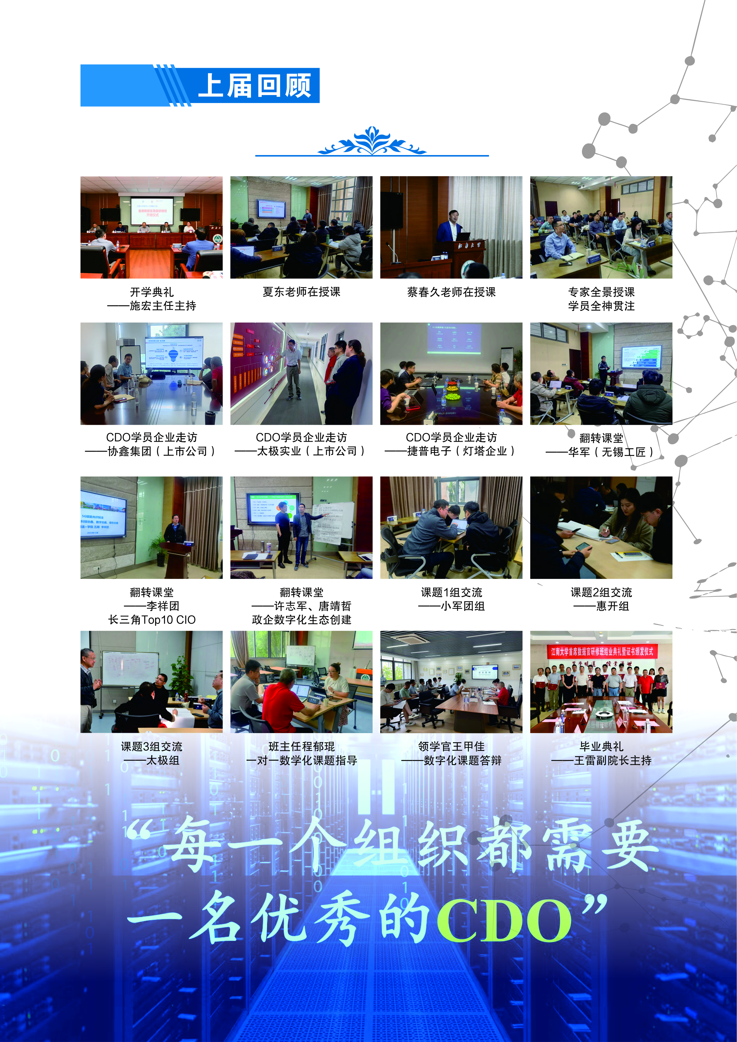 江南大学首席数据官研修班不仅仅是教学平台,也是推动首席数据官之间开展业务交流与合作的平台,有利于部门合作、地区合作和实体产业的合作,优势互补,从整体上全面开创数字经济发展新局面。研修班将设立由学员发起的CDO校友会,有组织地开展各类活动,鼓励学员以自组织的方式进行专题探索。研修班也将通过发行内部通讯,进行跨界交流。