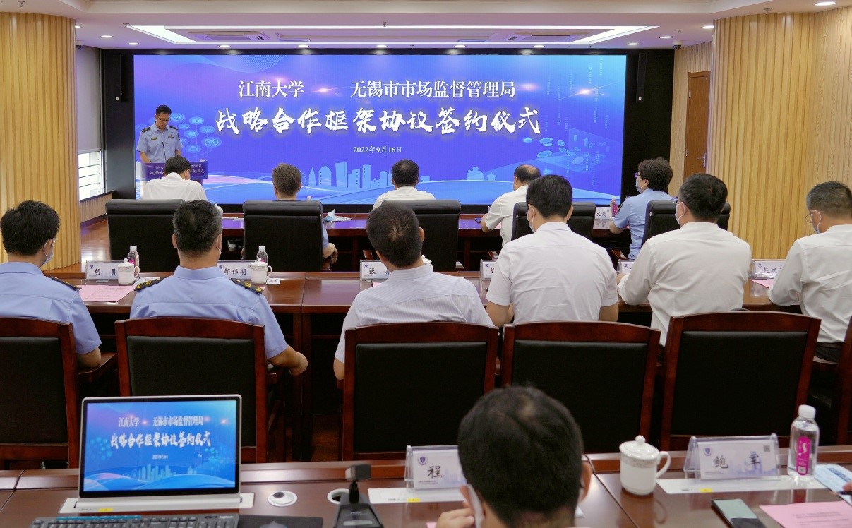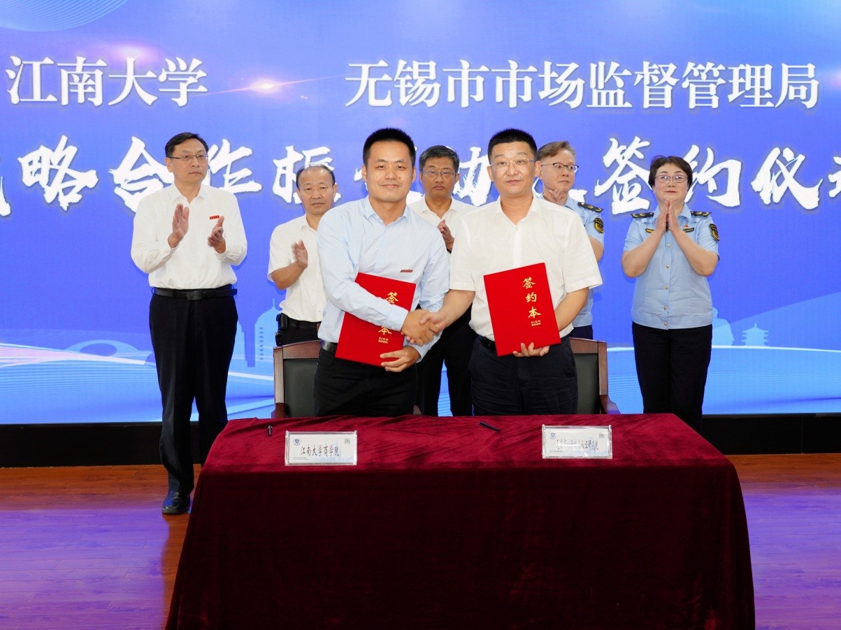 9月16日,江南大学与无锡市市场监督管理局举行战略合作框架协议签约仪式。校长陈卫、副校长顾正彪、吴正国与市场监管局局长周建辉、副局长于文霞、邹伟明、胡勇、叶建平、总工程师谢刚等出席仪式。