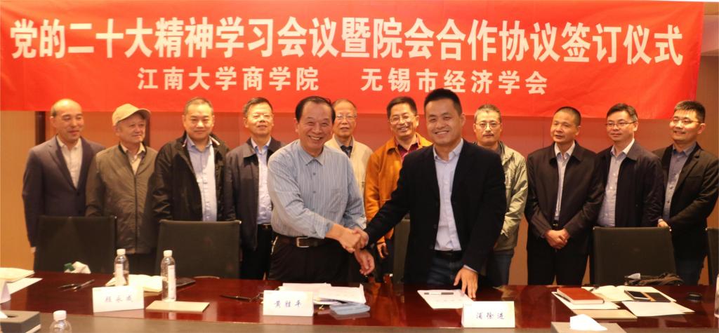 与无锡市经济学会举行“党的二十大精神学习会议暨院会合作协议签订仪式”。无锡市经济学会会长、《江南风》杂志总编辑、编审黄胜平,无锡市经济学会副会长、《江南风》杂志副总编汤可可,无锡市经济学会秘书长、无锡国家高新区发展研究院研究员顾永成,无锡市委市级机关工委副书记毛勤勇,无锡市行政审批局副局长包松林,《江南风》杂志编辑部常务主任那张军;西港娱乐
