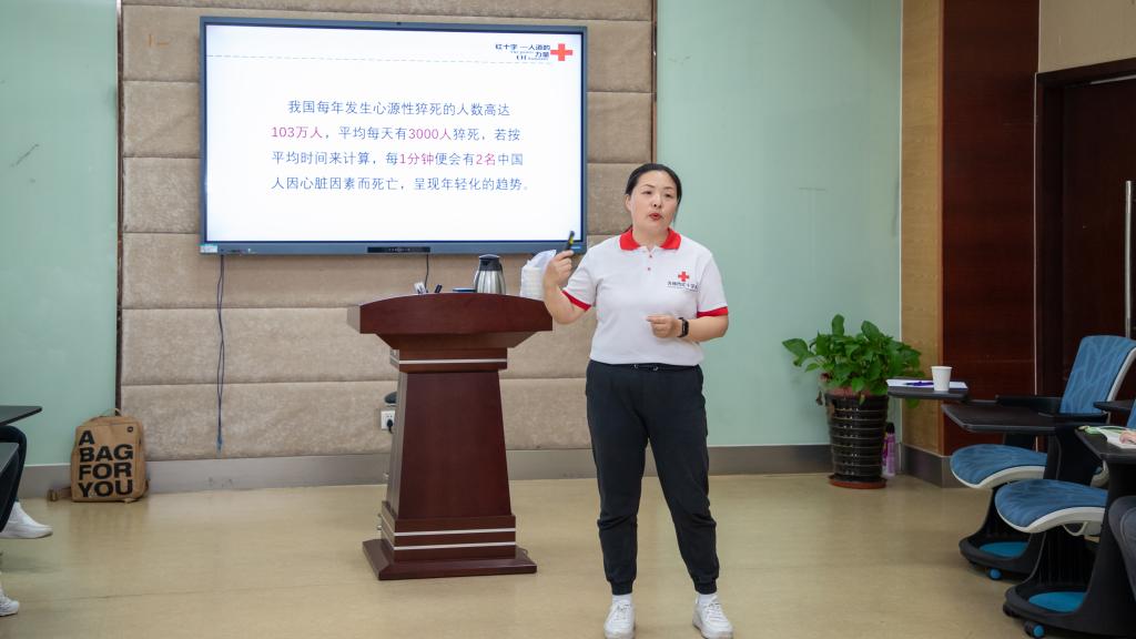 117教室参加了由无锡市红十字会举办的“救在身边”应急救护培训。红十字会的应急救护培训讲师谈晓颖具备丰富的急救经验,她用一系列生动的动画视频,揭秘了心肺复苏的科学原理,以及黄金四分钟内为大脑和心脏供血的至关重要性;她通过无锡市马拉松现场急救的真实视频,展示了自动体外除颤仪(AED)在挽救生命方面的“超能力”;她用一段儿童吃樱桃堵塞气管的真实录影展示了慌乱的家长如何用海姆利克急救法成功救助孩子的惊心一刻,令人印象至深。