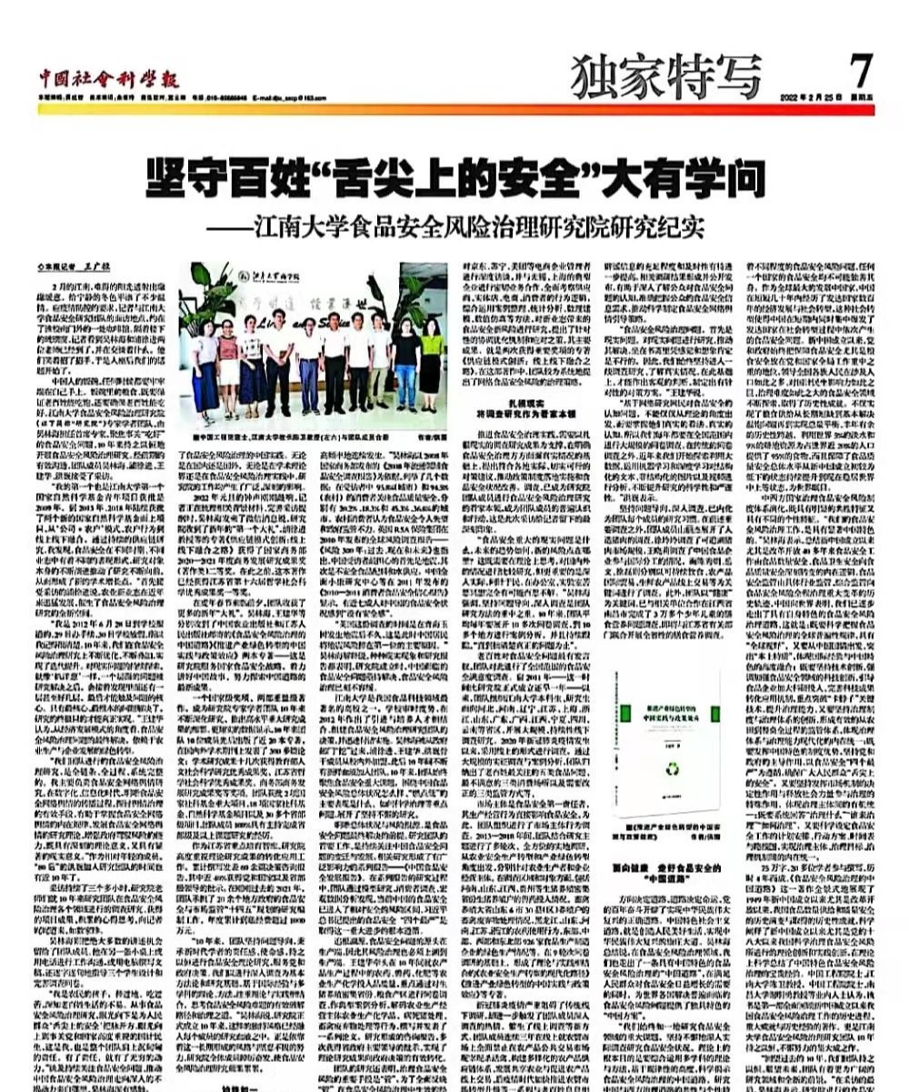 《坚守百姓“舌尖上的安全”大有学问——江南大学食品安全风险治理研究院研究纪实》原文链接://sscp.cssn.cn/xkpd/xl/202202/t20220225_5395510.html