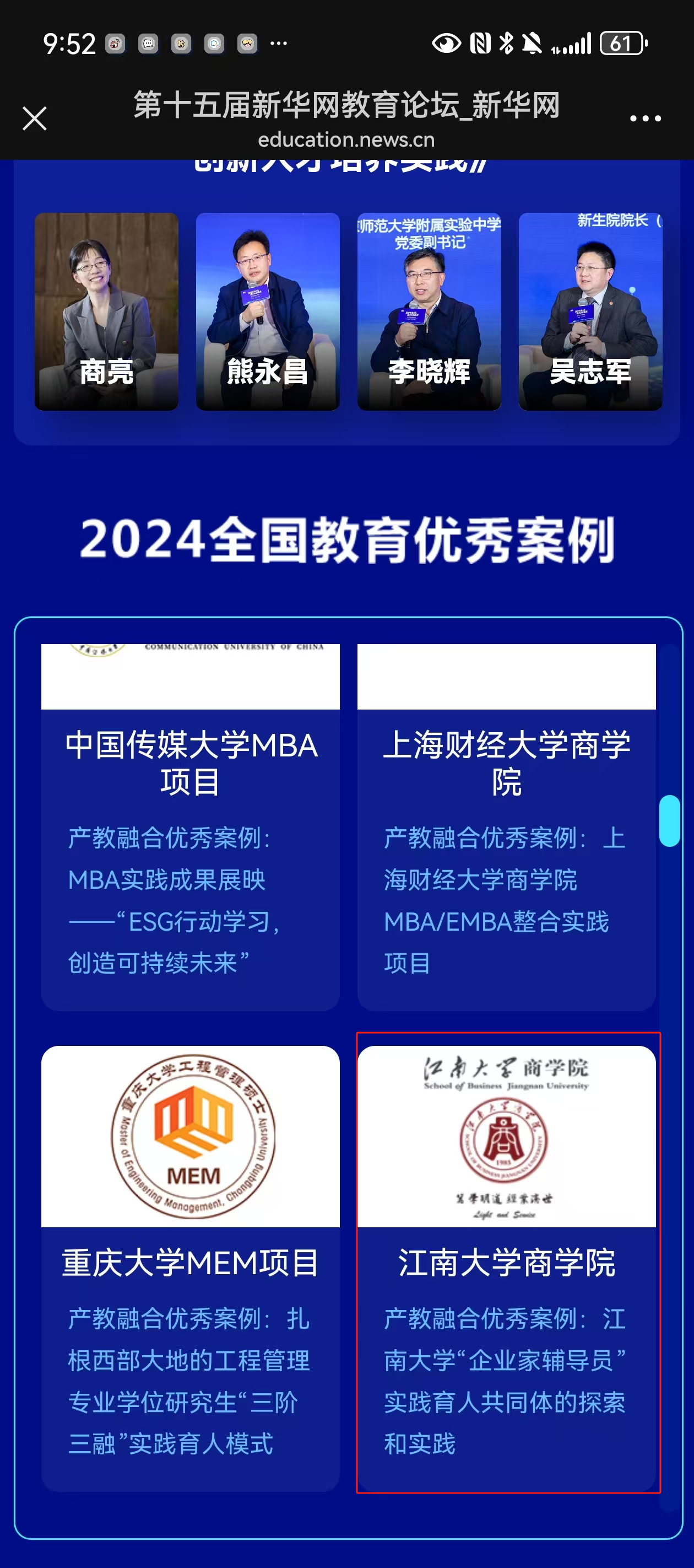 《产教融合优秀案例:江南大学“企业家辅导员”实践育人共同体的探索和实践》案例成功入选2024全国教育优秀案例。第十五届新华网教育论坛详情链接://education.news.cn/zthz/2024cip/index.html