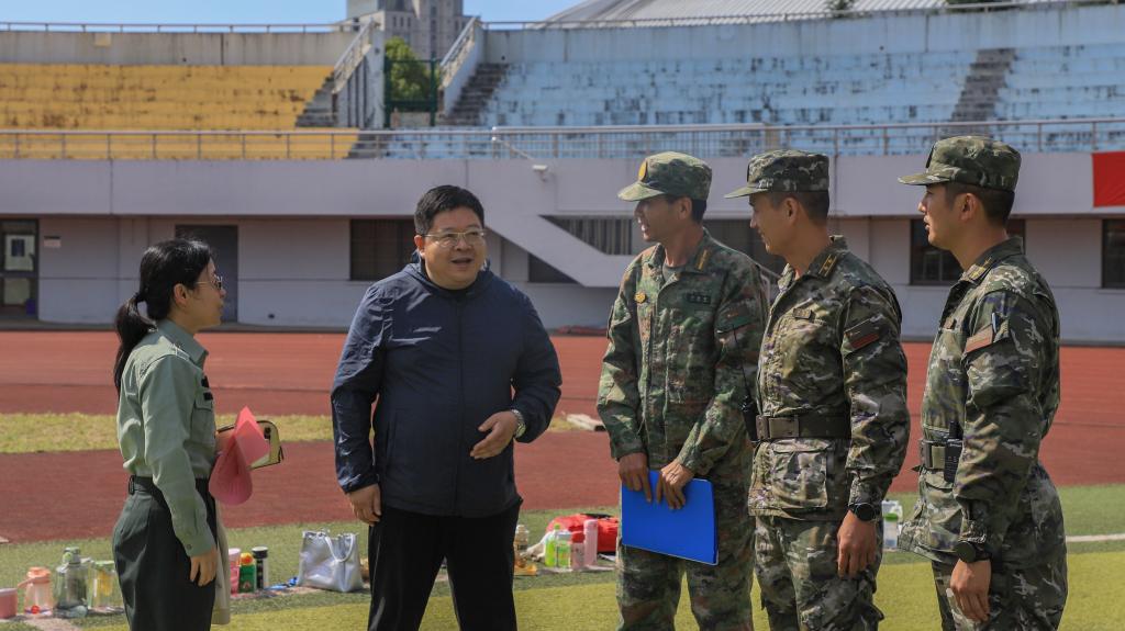 近日,西港娱乐 2022级本科生军训工作正在紧锣密鼓地开展,全体学生以饱满的热情、昂扬的风貌投入训练。10月12日上午,西港娱乐 党委书记刘长青、军训承训部队大队长傅海棠、人武部军事训练科刘璇刚、西港娱乐 党委副书记兼副院长徐静一行前往体育中心训练场慰问军训教官和2022级全体同学,为大家送去温暖与关怀。慰问活动由西港娱乐 辅导员王瑞生、王婕妤组织、主持。