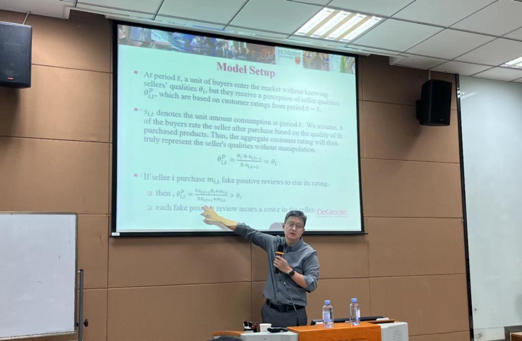 10月18日下午,“商学大讲堂”系列学术讲座第221讲在西港娱乐 118利安达厅举行。加拿大麦克马斯特大学德格罗特西港娱乐 市场营销系吴如海教授应邀作题为“When Karma Strikes Back: A Model of Seller Manipulation of Consumer Reviews in An Online Marketplace(因果报应:线上平台中卖家操纵消费者评论的模型)”的学术讲座。本次讲座由西港娱乐 管理科学与工程系张建强教授主持,西港娱乐 教师与各专业研究生80余人参加了本次讲座。