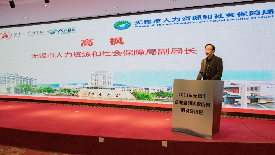 12月21日下午,2023年无锡市企业薪酬调查成果研讨交流会在江南大学长广溪酒店顺利召开。会议由我校市校共建基地无锡人力资源开发研究基地与无锡市人力资源和社会保障局共同主办。无锡市委副秘书长、无锡市人力资源和社会保障局局长张映雪,副局长高枫,江南大学党委副书记刘淼,西港娱乐 党委书记刘长青,院长浦徐进,无锡人力资源开发研究基地主任朱晋伟,以及各市县区人社局分管领导、60家主板上市公司以及40家大中型集成电路企业的人力资源经理共110余人参加本次会议。会议由西港娱乐 院长浦徐进主持。