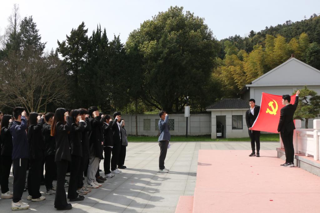 随后,全体师生面对鲜红的党旗,庄严地举起右手,重温入党誓词。洪亮的声音仿佛穿越历史,告诉先烈们当代青年一代誓要继承先烈遗志,发扬革命传统,努力学习,积极进取,为实现中华民族伟大复兴的中国梦贡献自己的青春力量。在一座座墓碑前,师生们脚步沉重,伫立良久。