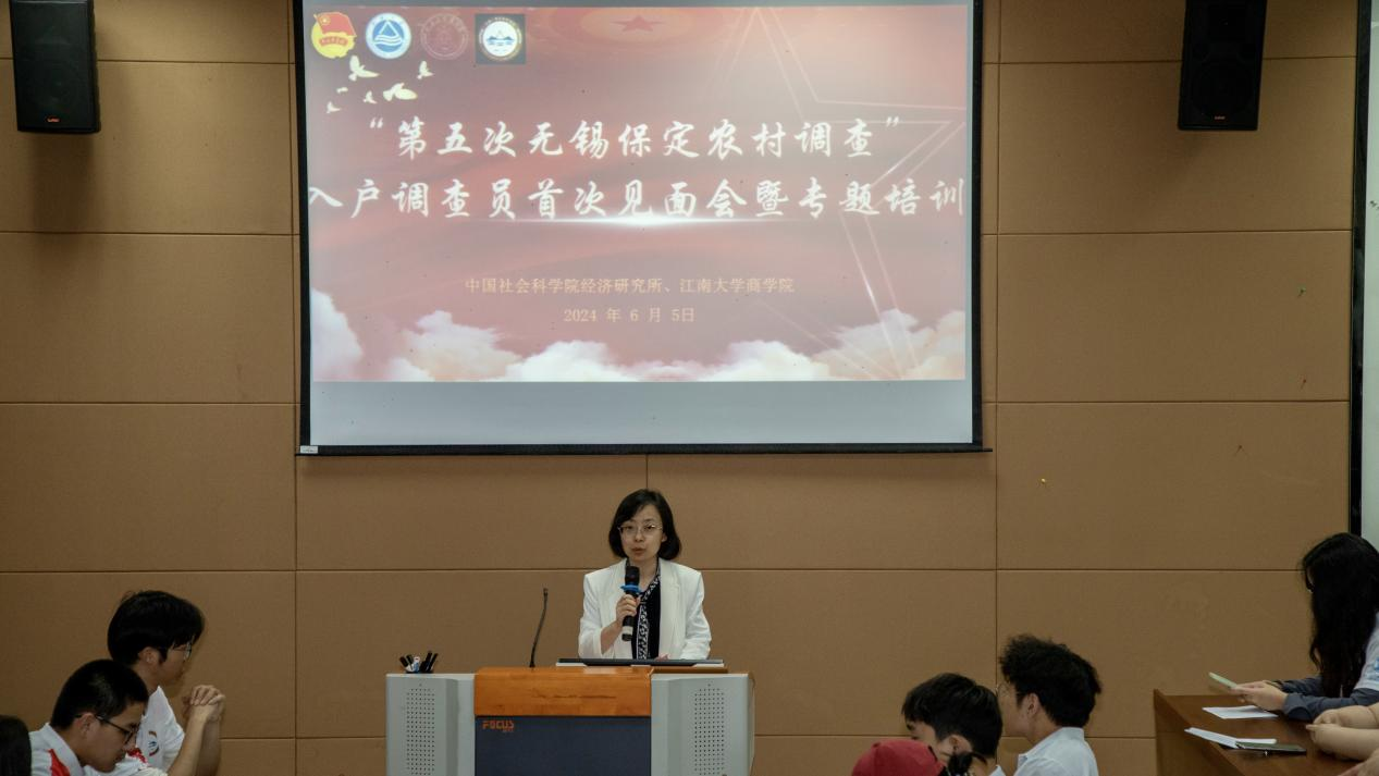 6月5日下午,“第五次无锡保定农村调查”入户调查员首次见面会暨专题培训在西港娱乐 MBA118会议室举行。中国社会科学院经济研究所研究员、中国社会科学院大学教授隋福民,西港娱乐 党委副书记兼副院长徐静、分团委书记王璁以及西港娱乐 70名入户调查员出席活动。