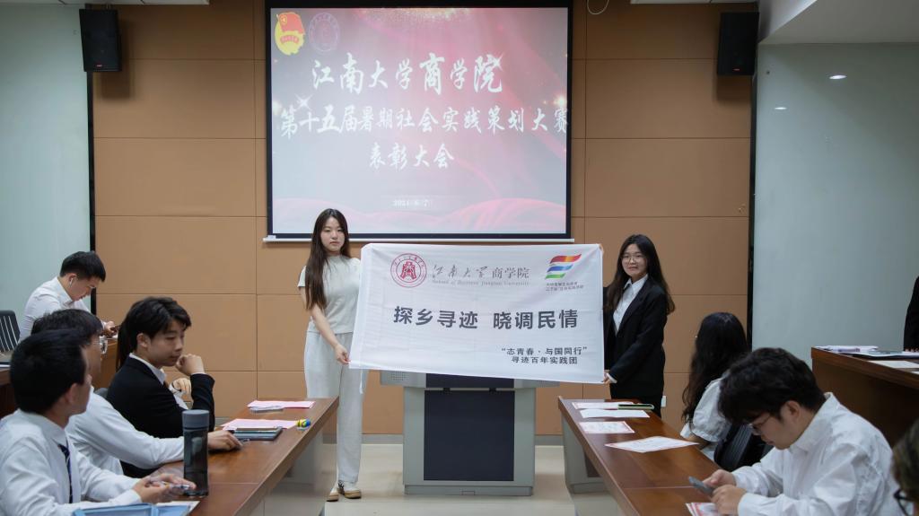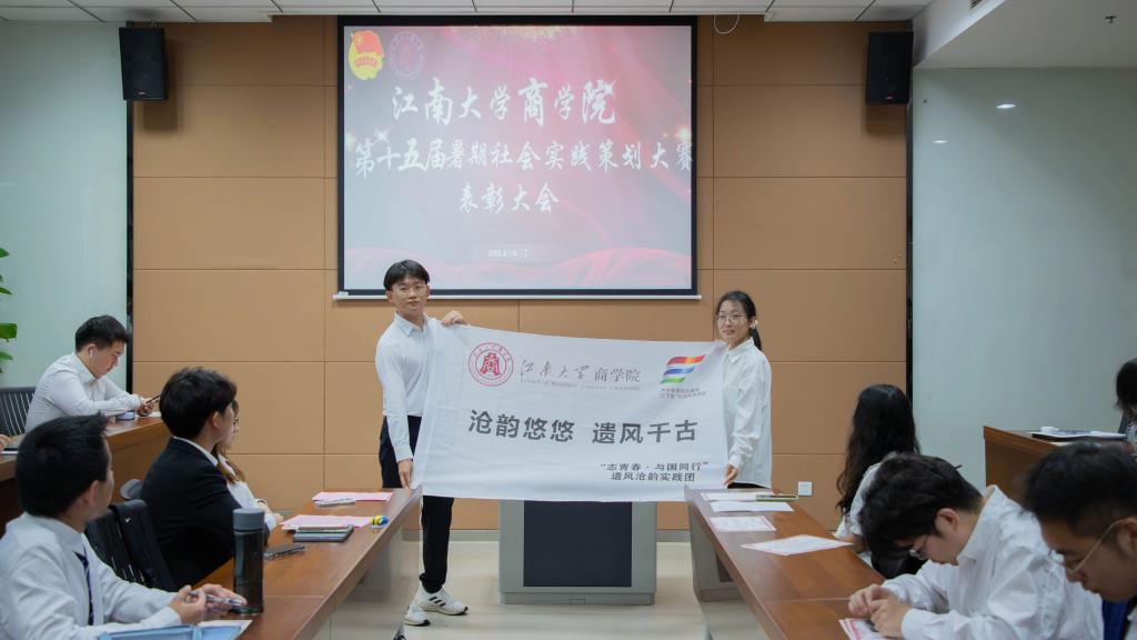 第十五届暑期社会实践策划大赛表彰仪式,分团委书记王璁、分团委副书记曹梦然及各参赛团队代表参与活动。