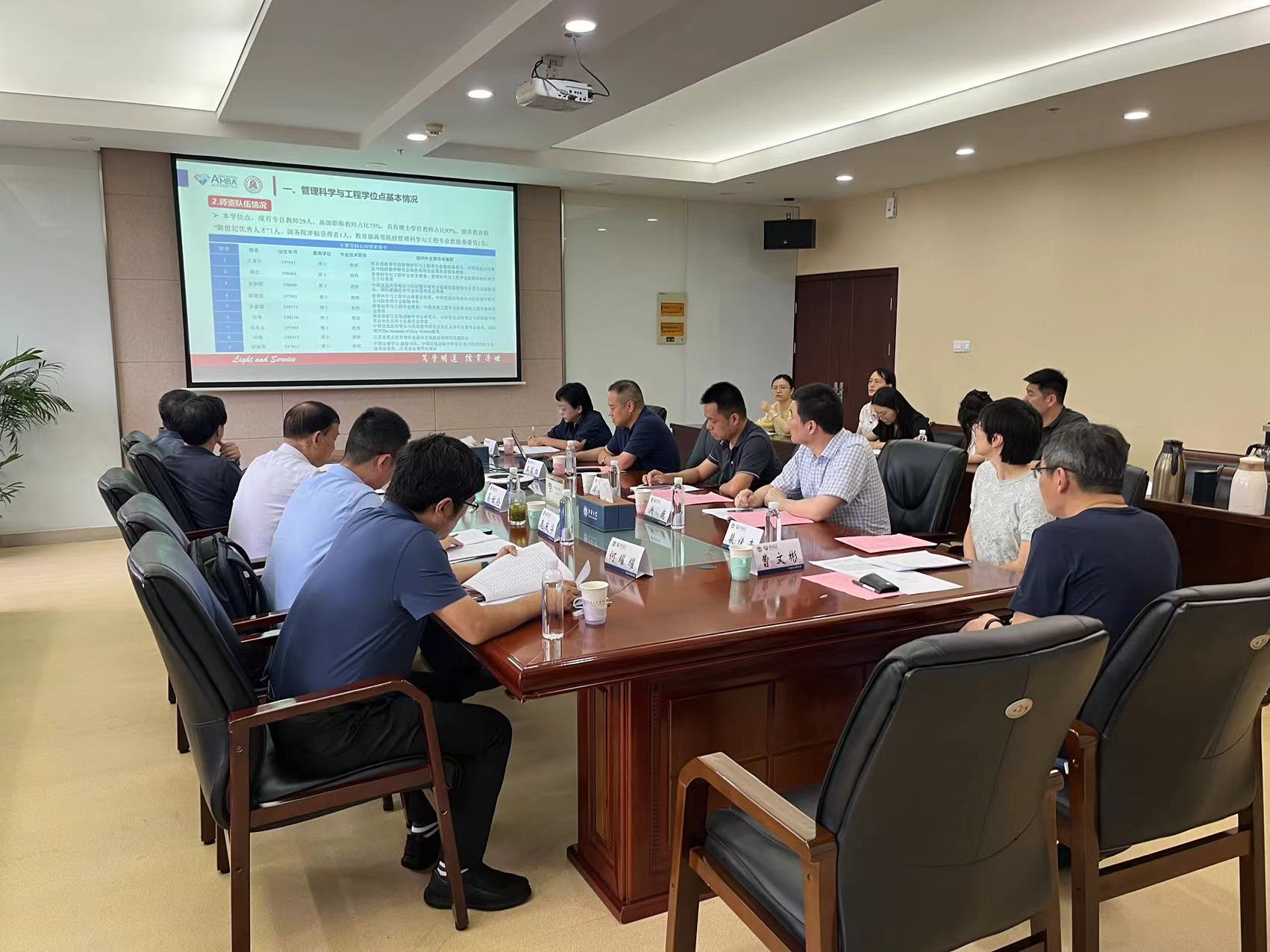 于6月25日至28日分学科召开应用经济学、管理科学与工程、工商管理学一级学科硕士学位授权点及工商管理(MBA)专业学位授权点专家现场评估会。本次评估邀请到了省内外知名专家学者和行业专家组成评审组。上海对外经贸大学徐永林教授、南京审计大学裴育教授、河海大学张兵教授、东南大学胡汉辉教授、南京农业大学应瑞瑶教授组成应用经济学学位点评估专家组。东北财经大学汪旭晖教授、武汉大学汪涛教授、东南大学胡汉辉教授、东南大学杜运周教授、江苏大学朱永跃教授、无锡太极实业股份有限公司党委书记、董事长、江苏省产业教授孙鸿伟等组成工商管理学和工商管理(MBA)学位点评估专家组。江苏科技大学葛世伦教授、南京大学沈厚才教授、河海大学庞庆华教授、合肥工业大学何耀耀教授、上海海事大学吴坚教授组成管理科学与工程学位点评估专家组。
