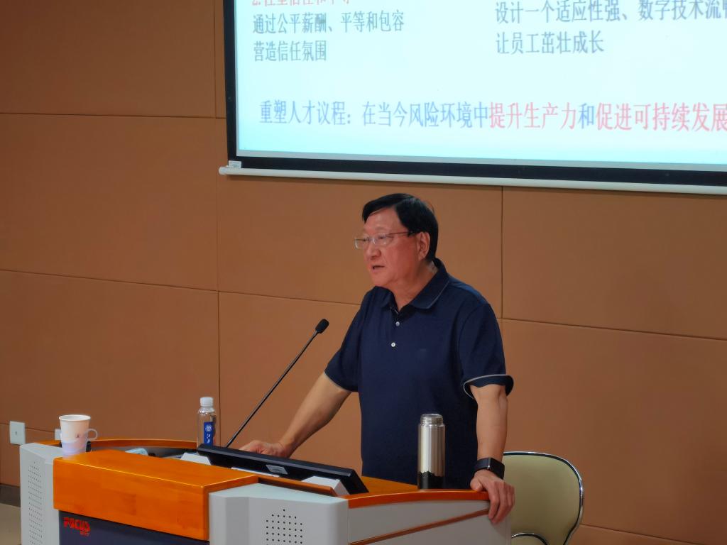 赵教授从项目执行、研究成果、人才培养和国际合作与交流四个维度分享与商院老师合作的国家自然科学基金重点项目《基于创新导向的中国企业人力资源管理模式研究》。他指出:人才是组织数智化发展的基石,进行数智化转型、构建数智化组织已经成为组织应对数智时代环境突变,实现可持续发展的必然选择,组织需要具备数智化思维和运用数字知识、技能创造性解决复杂问题能力的数智型人才,推动人力资源管理的数智化转型,以助力企业业务运营升级。
