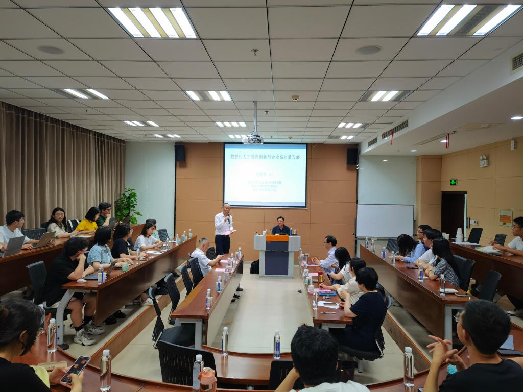 近日,“商学大讲堂”系列学术讲座第247讲在西港娱乐 116报告厅举行。南京大学人文社科资深教授、南京大学西港娱乐 名誉院长、南京大学行知书院院长赵曙明教授应邀作题为“数字化人才管理创新与企业高质量发展”的学术讲座。讲座由江南大学党委常委、统战部部长、校工会主席朱飞主持,西港娱乐 组织管理系教师及应用经济学、工商管理等专业研究生共60余人参与。