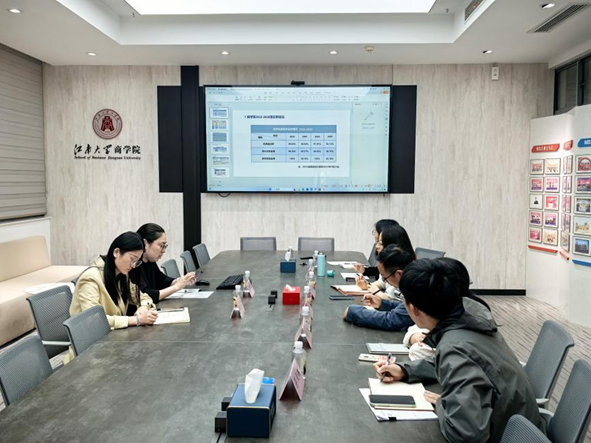 孙小芳表示学院2025届就业工作已进入攻坚阶段,学院将进一步贯彻落实学校就业工作要求,精心研判就业形势,及时调整就业工作思路,多措并举全力促进大学生就业。就业工作辅导员吴松从学院就业工作思路、当前形势分析、工作难点及思路举措三个方面汇报了学院就业工作整体情况。