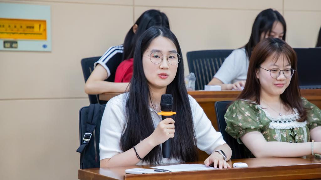 座谈会上,工国2202班张诒和作为西港娱乐 2022级工商国际专业学生代表发言。她回顾了在校学习生活的点点滴滴,对母校的悉心培养表示诚挚感谢,并分享了未来留学生活的目标规划,表示期待早日学成回国,为中国式现代化建设贡献青春力量。