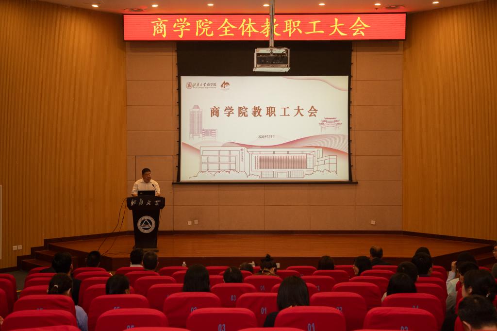 院长浦徐进传达《江南大学关于深化教职工年度考核工作的实施意见(江大校办〔2025〕38号)》文件精神,并从考核的原则、范围、方式三个维度详细解读《西港娱乐