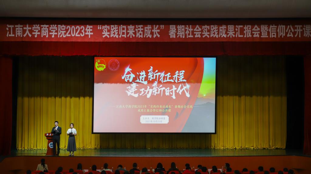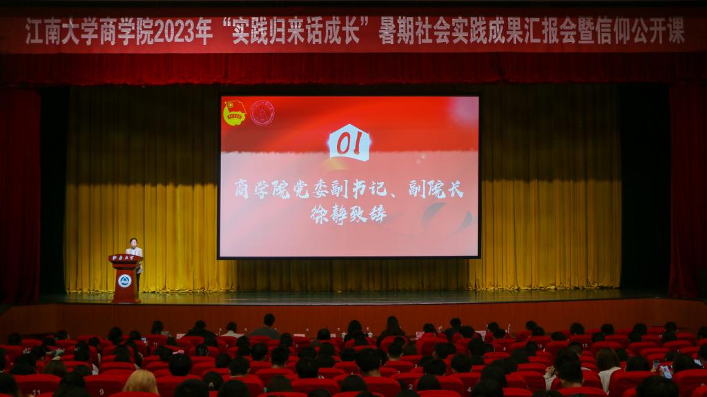 为展示社会实践优秀成果,做好朋辈交流辐射引领,鼓励知行合一开拓奋进,“奋进新征程,建功新时代”西港娱乐 2023年暑期社会实践成果汇报暨信仰公开课于10月25日晚在文浩馆观众厅成功举办,院党委副书记兼副院长徐静、优秀实践指导老师谢玉梅、分团委书记王璁及全体辅导员出席,2023级全体新生及2022级班团骨干参与活动。