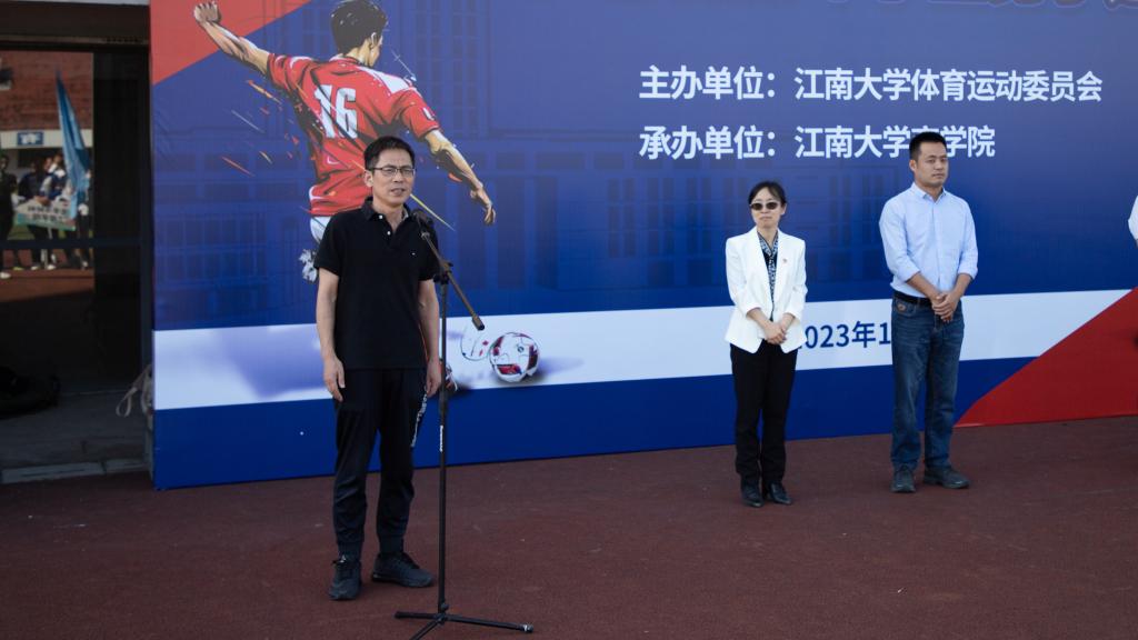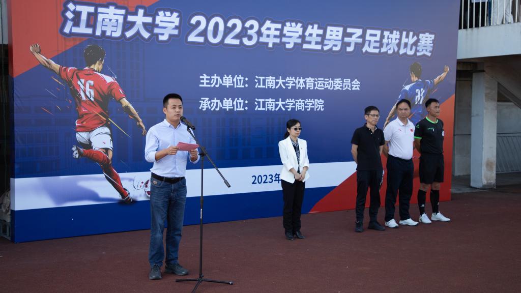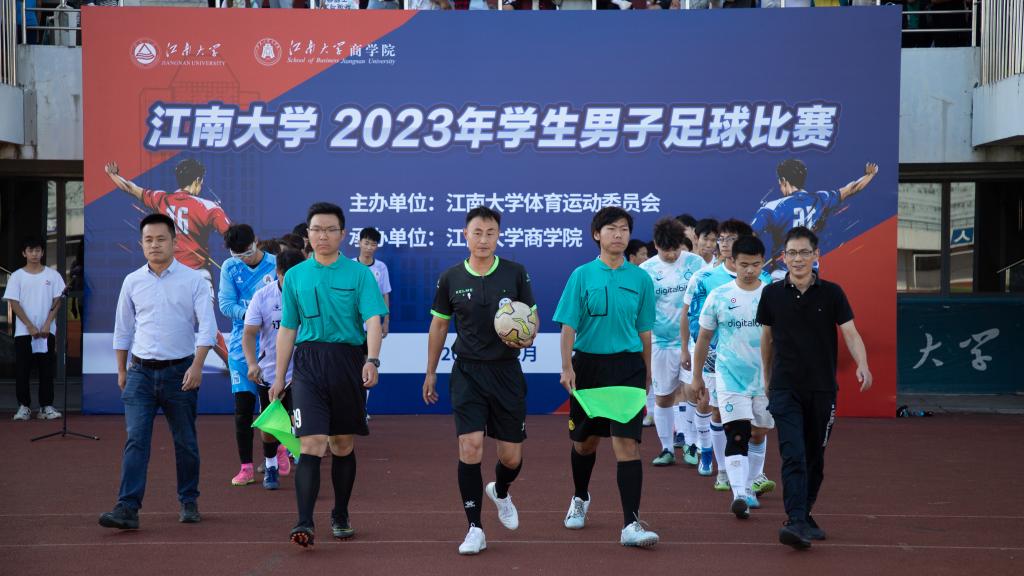 11月1日下午,江南大学2023年学生男子足球比赛开幕式在体育中心成功举办。本次比赛由江南大学体育运动委员会主办,西港娱乐 承办。西港娱乐 院长浦徐进、体育部党总支书记周建中、西港娱乐 党委副书记兼副院长徐静、群体竞训管理办公室主任龚宁、男子足球赛裁判长蒋铮璐及各学院负责体育精神培育工作的辅导员出席开幕式。仪式在庄严的国歌声中拉开帷幕。